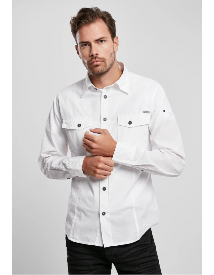 Vždy nosit jednoduché košile nemůže být vaším stylingovým řešením pro každý den, takže čas od času změňte své módní vzory a vylepšete svůj outfit například touto přiléhavou košilí značky Brandit, která je dodávána se stylovým štítkem s logem a dovedně doladí vaše oblečení. vzhled. Tento nádherný vzor košile získáte v přiléhavém dělnickém střihu v klasické černé.