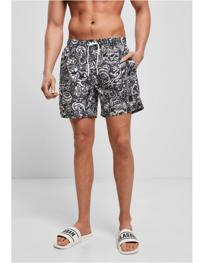 S těmito vzorovanými plaveckými šortkami získáte svůj zasloužený letní pocit - zaručeně. Veselý potisk a svěží barvy přitahují pozornost a umožňují vám cítit se dobře – ve volném čase nebo na dovolené. Díky širokému elastickému pasu se zapínáním na šňůrku jsou velmi pohodlné na nošení.