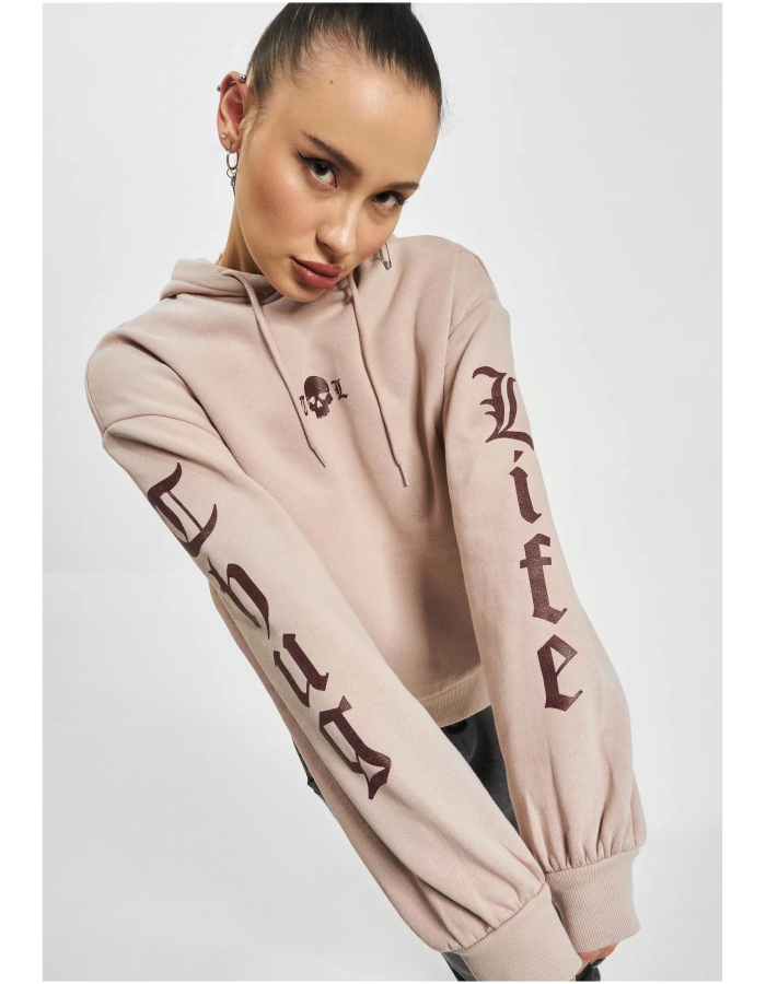 Hoody designed as an everyday layer with a relaxed fit and a short, cropped length that sits above the hip for a modern silhouette. Made from a soft cotton-blend jersey with a cozy interior handfeel, it features a hooded neckline with adjustable drawcords, long set-in sleeves and a kangaroo pouch pocket for hands and small carry. Ribbed trims at the cuffs and hem lock the shape while printed graphics on the sleeve and chest add attitude without bulk, and the construction keeps movement easy for casual wear or layered outfits.