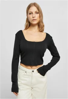 Dámská černá s krátkým žebrem a širokým výstřihem do V s dlouhým rukávem