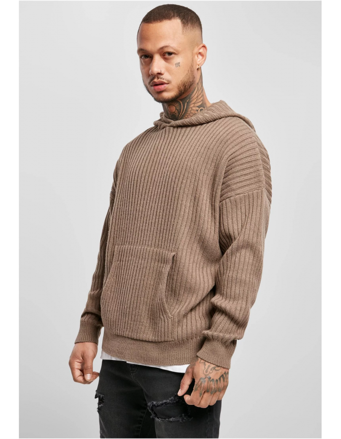 Pánská mikina s kapucí se vzorem širokého žebrovaného úpletu, který nesmí chybět v žádném módním šatníku. Jemný kousek oblečení je vybaven všemi potřebnými kapucemi, jako je velká kapuce, široké žebrované manžety na rukávech a lemu a klokaní kapsa. Akrylový úpletový materiál poskytuje extra dávku ležérnosti a velkorysý volný střih s širokými spadlými rameny se skvěle hodí ke stylu.