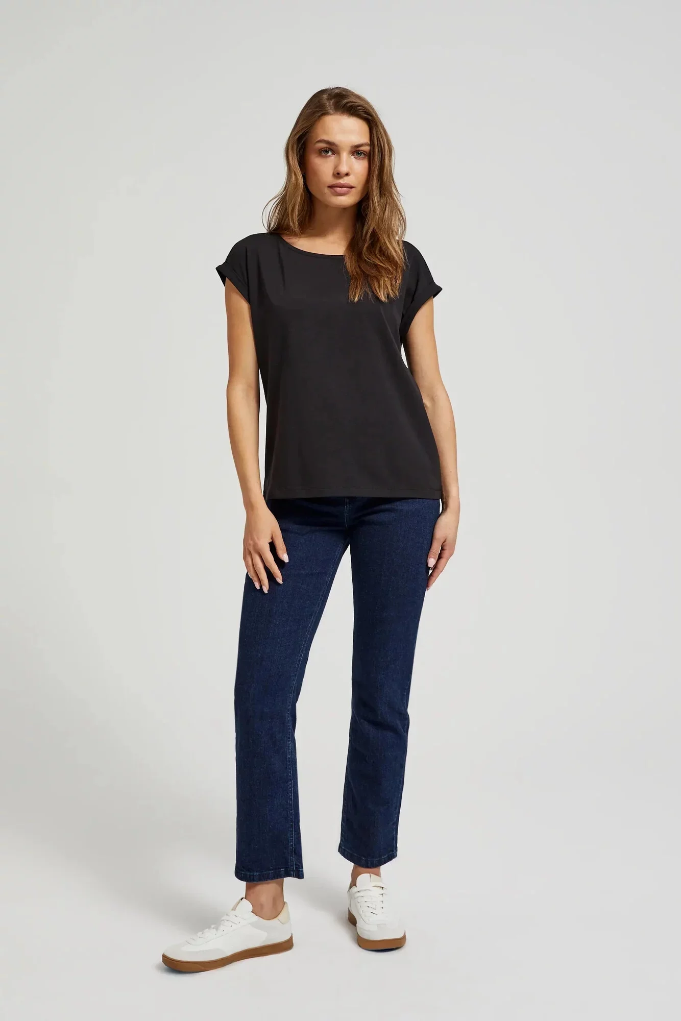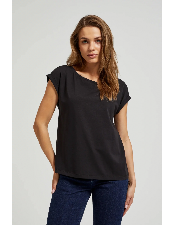 95%BAVLNA, 5%ELASTAN Halenka v černé barvě je ideální volbou pro každou ženu, která si cení pohodlí a stylu. Vyrobená z vysoce kvalitní bavlny, hladká halenka bez vzoru zajistí pohodlí při nošení. Model s krátkými rukávy s lodičkovým výstřihem a volným střihem se spadlými rameny dodává lehkost a eleganci. Univerzální halenka se skvěle hodí pro mnoho různých příležitostí. Můžeš ji nosit každý den, do práce, na setkání s přáteli nebo na večerní výlet. Dokonale se hodí jak k džínům, sukni, tak i ke kraťasům. Díky svému jednoduchému, a zároveň efektnímu designu, s ní snadno vytvoříš mnoho různorodých stylizací.