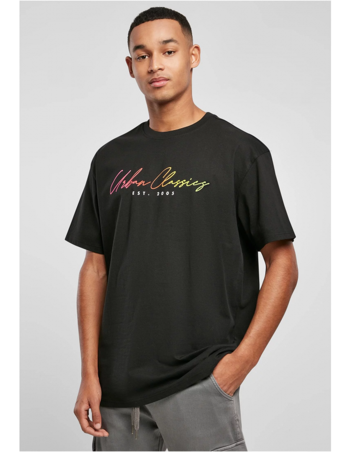 Základní pánské tričko s logem potěší klasickým, pohodlným střihem a moderním potiskem Urban Classics. Kurzivní nápis loga se táhne přes hruď v efektním barevném přechodu. Styl je zakončen kulatým výstřihem a mírně spadlými rameny. Toto letní tričko nabízí uvolněný oversize střih a příjemnou bavlnu z jednoho žerzeje a je pohodlným společníkem.