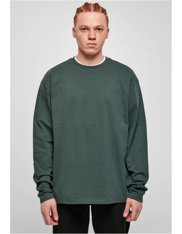 Městský pánský dlouhý rukáv se prezentuje v jednoduché jednobarevné barvě a určuje rozhodující akcenty svým materiálem z těžkého bavlněného žerzeje a širokým oversized střihem s vykrojenými rameny. Má odpovídající široký střih a je doplněna kulatým výstřihem.