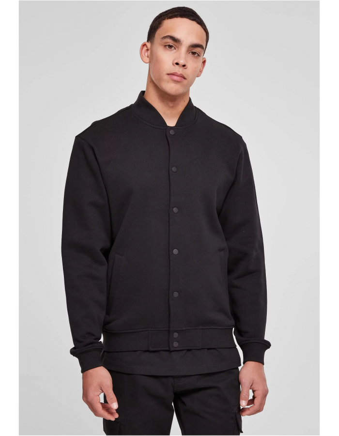 Pánské vysokoškolské sako uspokojí rovným jednobarevným designem a typickými stylovými prvky, jako je knoflíková léga, boční kapsy a široké žebrované manžety na rukávech a lemu, stejně jako žebrovaný límec. Materiál školní bundy je 460 g/m2 těžká bavlna a dokonale ladí s ležérním oversize střihem se spadlými rameny.