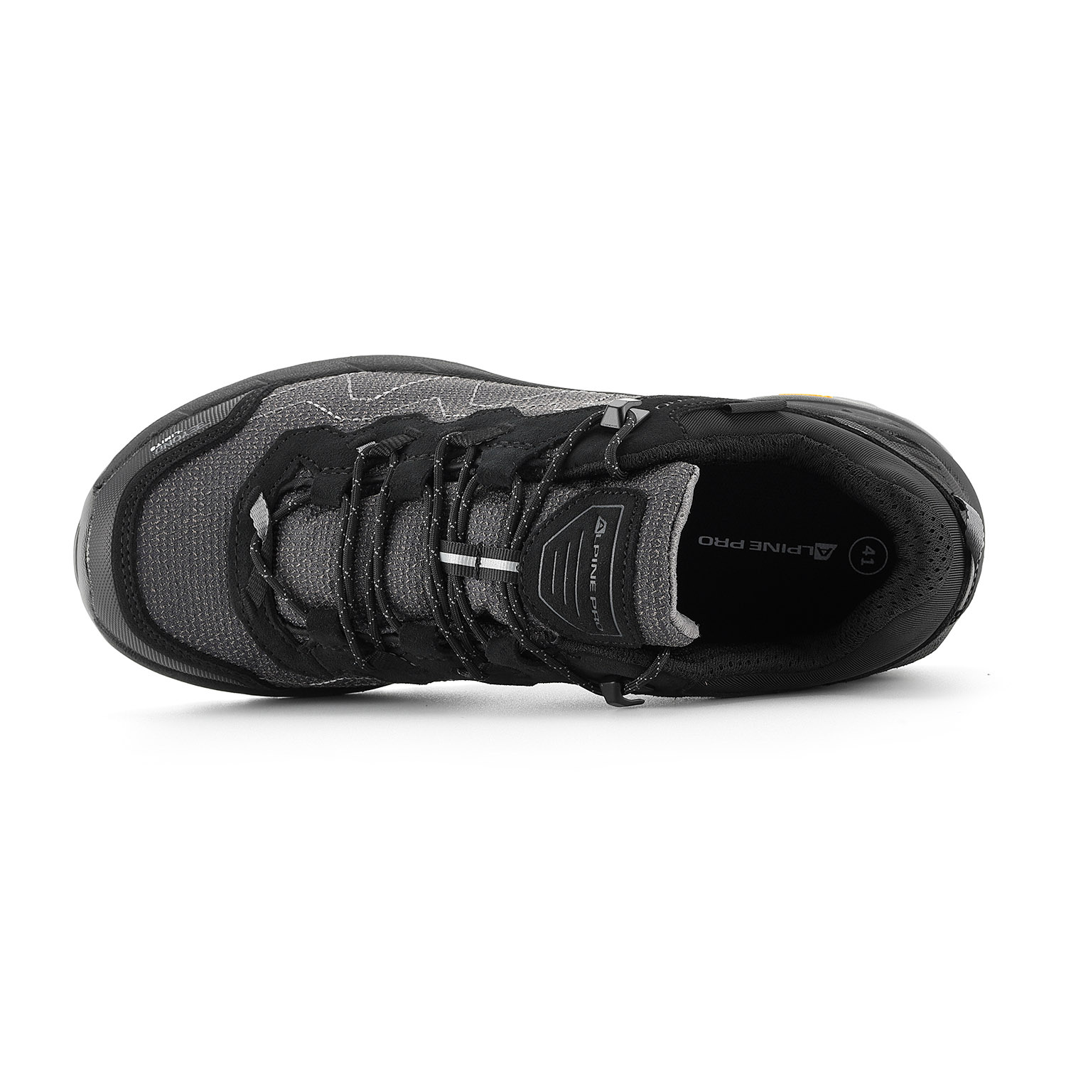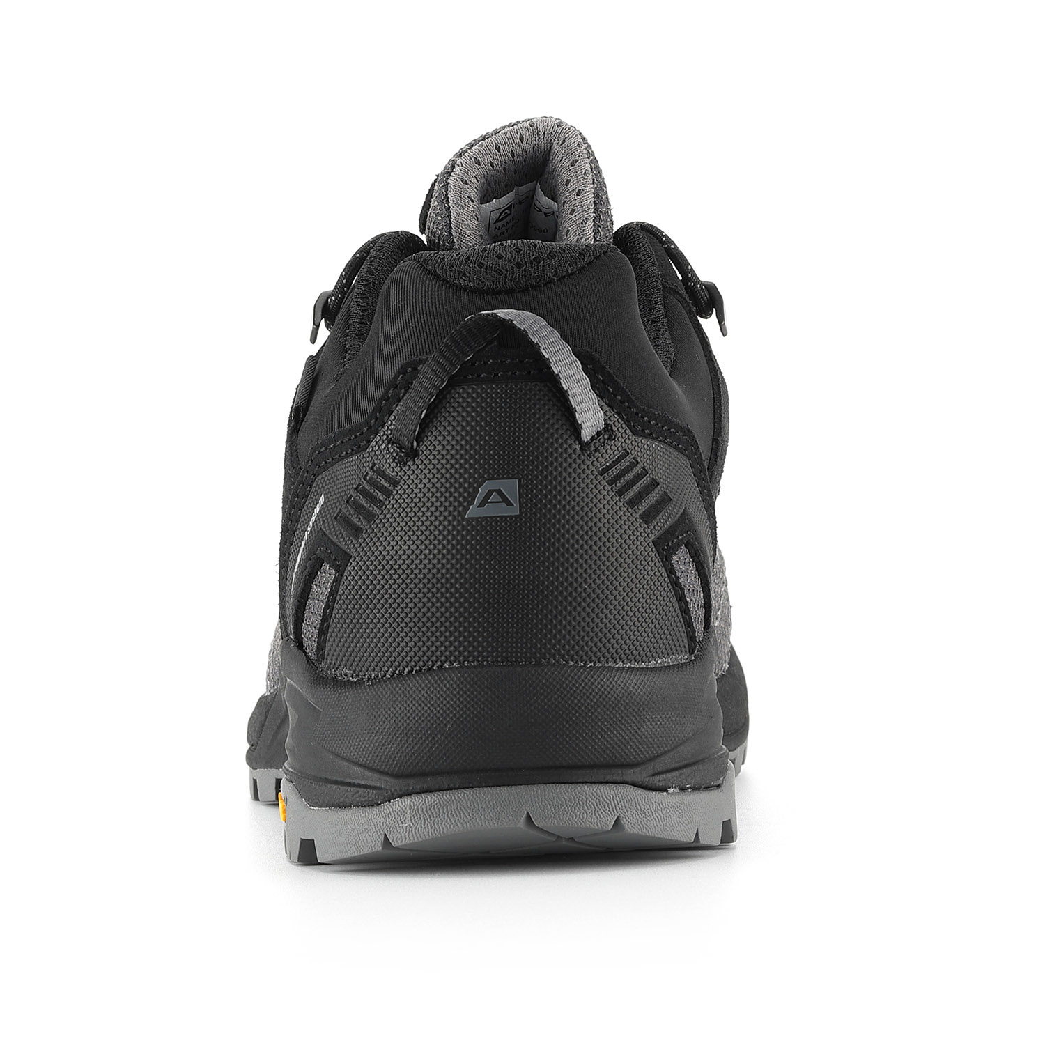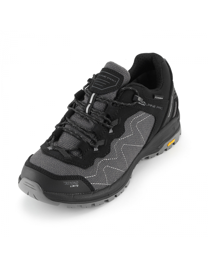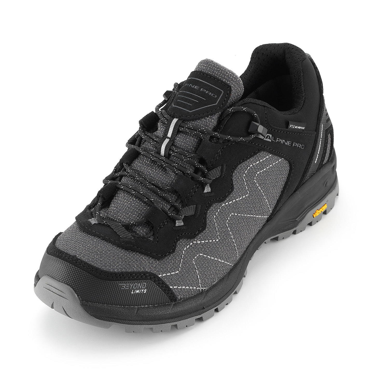 Svršek obuvi je vyroben z kombinace kvalitní textilie a přírodní usně, což zajišťuje vysokou odolnost proti opotřebení i potřebnou prodyšnost. Vnitřní podšívka z textilie přispívá k celkovému komfortu při nošení. Obuv je vybavena membránou PTX, která poskytuje funkční ochranu proti vlhkosti – z vnitřní strany efektivně odvádí pot, zatímco z vnější strany brání pronikání vody. Antibakteriální stélka pomáhá předcházet vzniku zápachu a zvyšuje hygienu při delším nošení. Mezipodešev z materiálu EVA tlumí nárazy a chrání klouby, což oceníte zejména při delších a náročnějších túrách. Pryžová podešev s technologií Vibram zajišťuje výbornou přilnavost a vysokou odolnost vůči opotřebení i v náročném terénu. K praktičnosti obuvi přispívá patní poutko pro snadnější obouvání a pevné tkanice pro bezpečné utažení. Obuv je doplněna logem Alpine Pro, které podtrhuje její kvalitní zpracování a český původ.