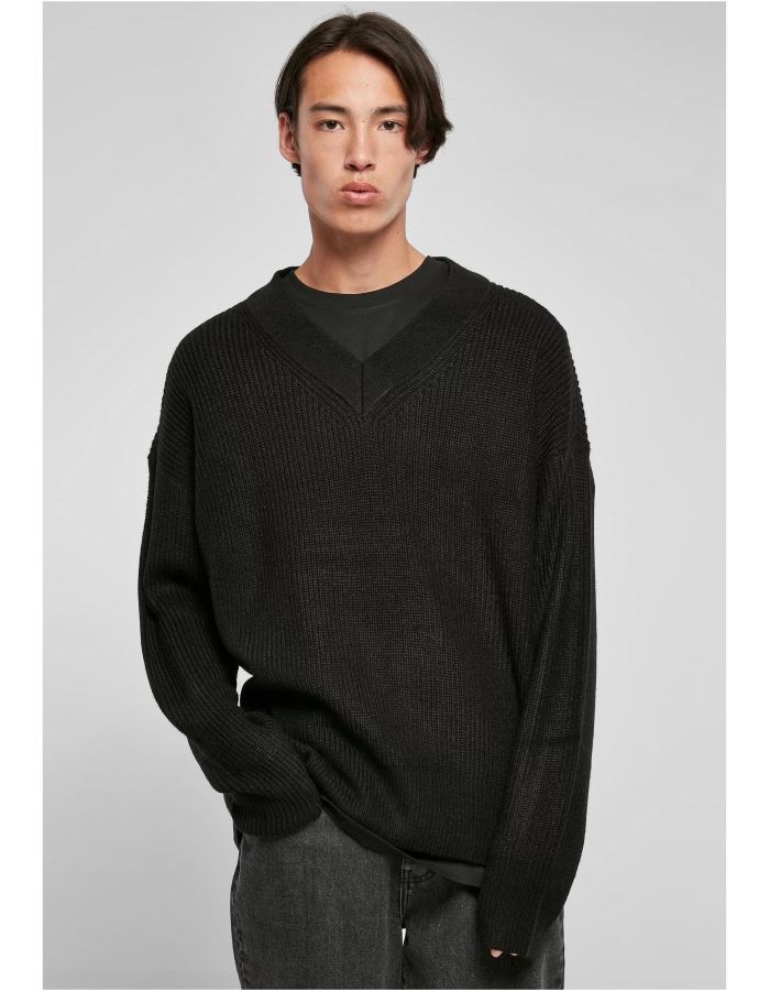 Tento pánský pletený svetr s hlubokým žebrovaným výstřihem do V působí do města. Zvolený střih volného střihu se spadlými rameny a širokým žebrovaným úpletem vzhled dokonale dotváří. Pánský pletený svetr je vyroben z akrylu a polyamidu.