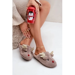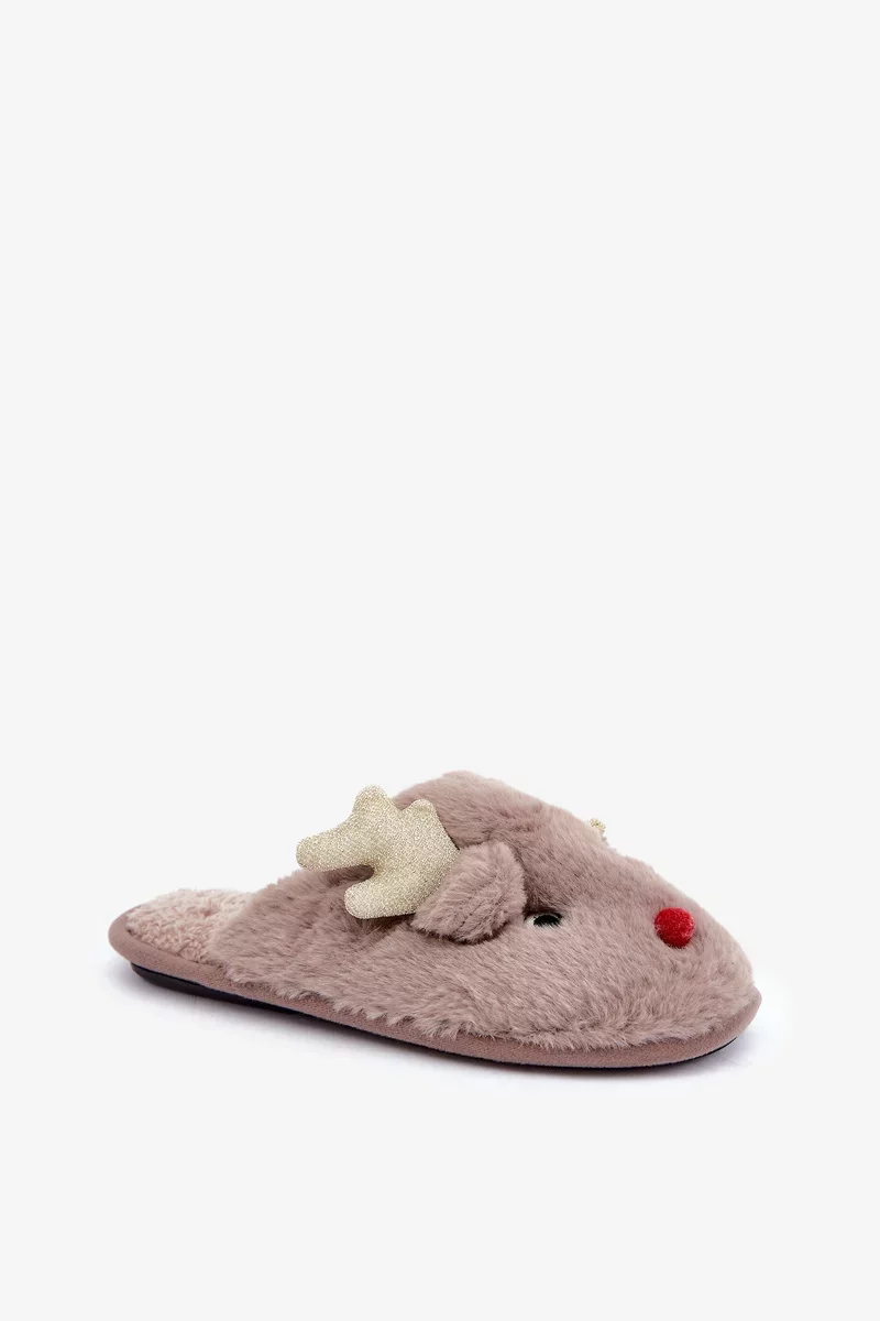 Vánoční pantofle s motivem soba Futrzane tmavě béžové Asielle 39