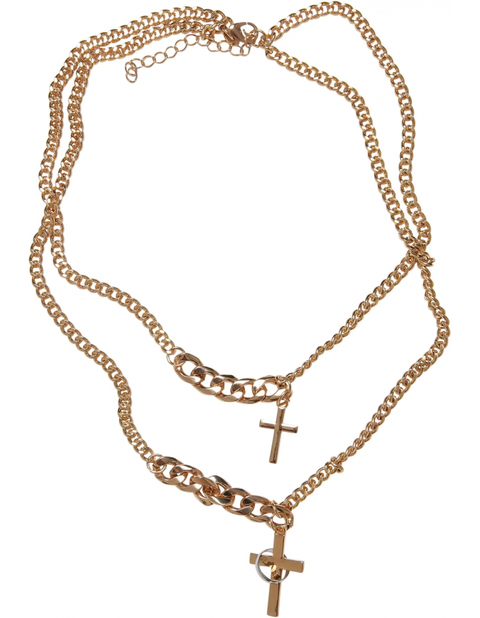 Vrstvený náhrdelník je nejuniverzálnější náhrdelník, který můžete mít ve své sbírce! Dvě vrstvy řetízku se dvěma vzory řetízku a křížovými přívěsky jsou nutností, pokud chcete, aby si vás všimli. Vrstvy náhrdelníku nemůžete nosit odděleně kvůli mechanismu na zadní straně. Jsou vyrobeny ze železa (95 %). Díky speciálnímu designu tohoto náhrdelníku nebudete mít problém jej kombinovat s různými outfity.