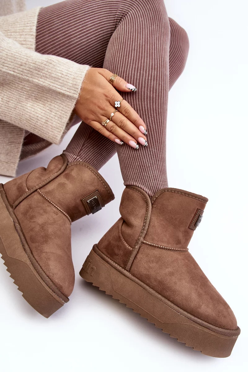 Dámské sněhule z veganských, voděodolných materiálů. Nasazeno na silné, protiskluzové podrážce. Uvnitř je zateplená syntetickou kožešinou. Tento model je mrazuvzdorný a poskytuje optimální tepelný komfort.Při výběru velikosti se řiďte tabulkou velikostí.