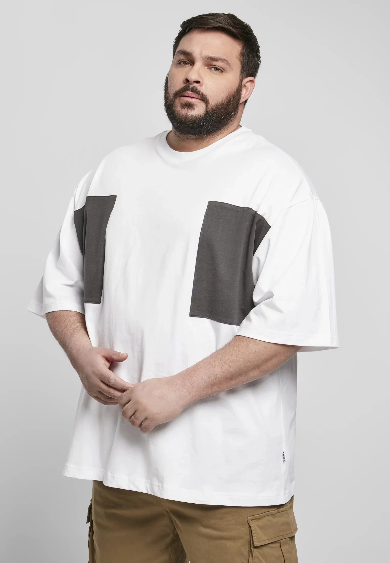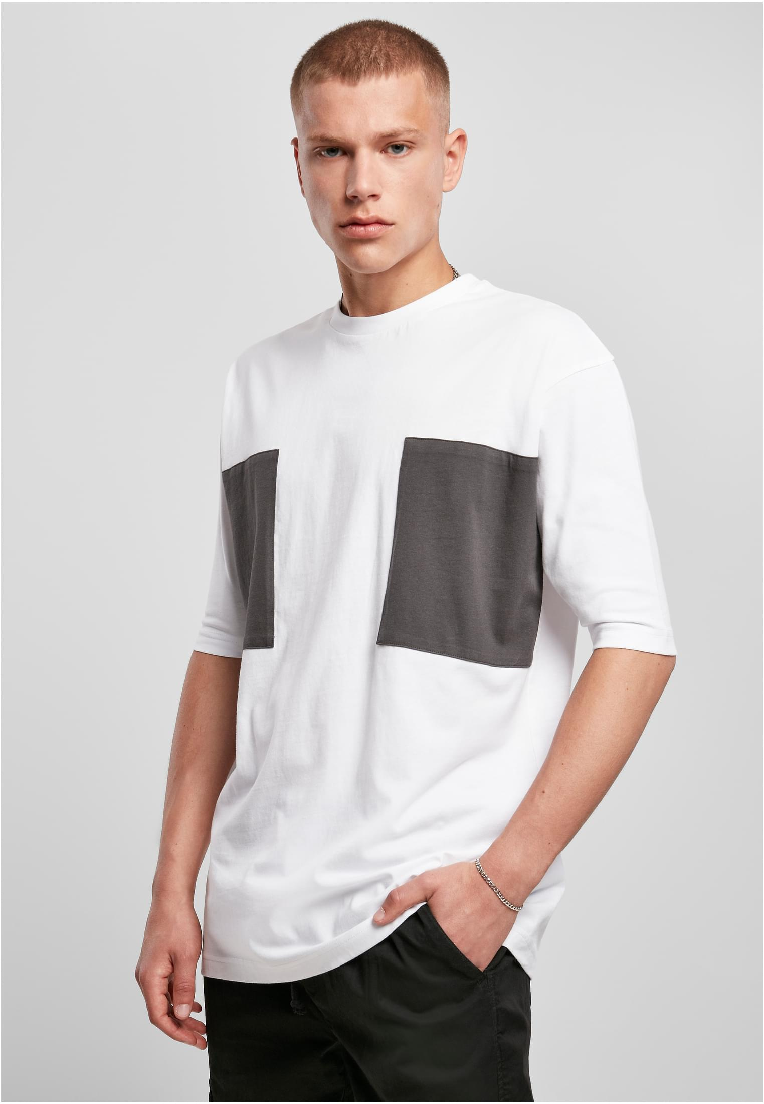 Velké dvojité kapsové tričko bílé/asfaltové M