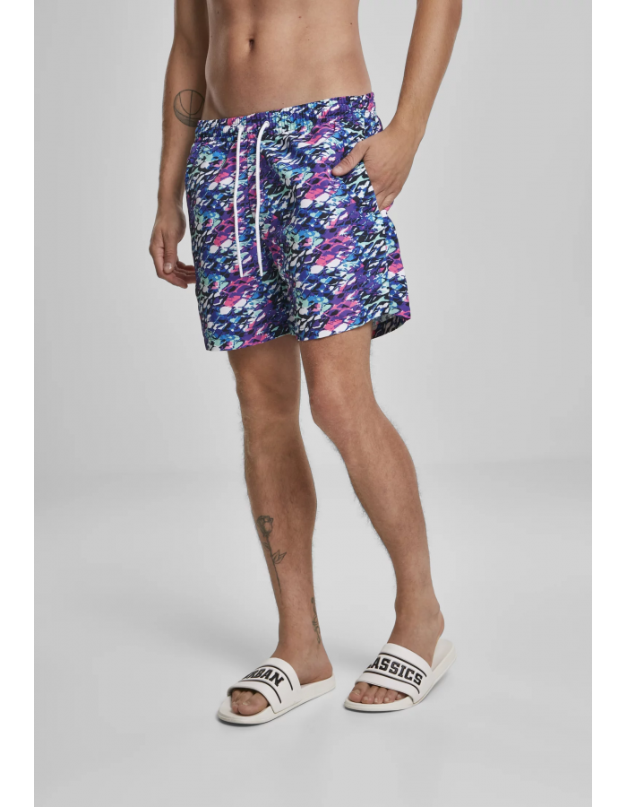 Zmínil se někdo o barvách? Už nic neříkej! Pokud jde o barvy, tyto neobvyklé plavky hrají svou vlastní ligu. Bombastický vzor kraťasů zaručeně upoutá pohledy a vyznačuje se překvapivě harmonicky propleteným vzorem. Různé odstíny modré také připomínají esenci vody a perfektně se hodí pro chladné ponoření do čekající vody.