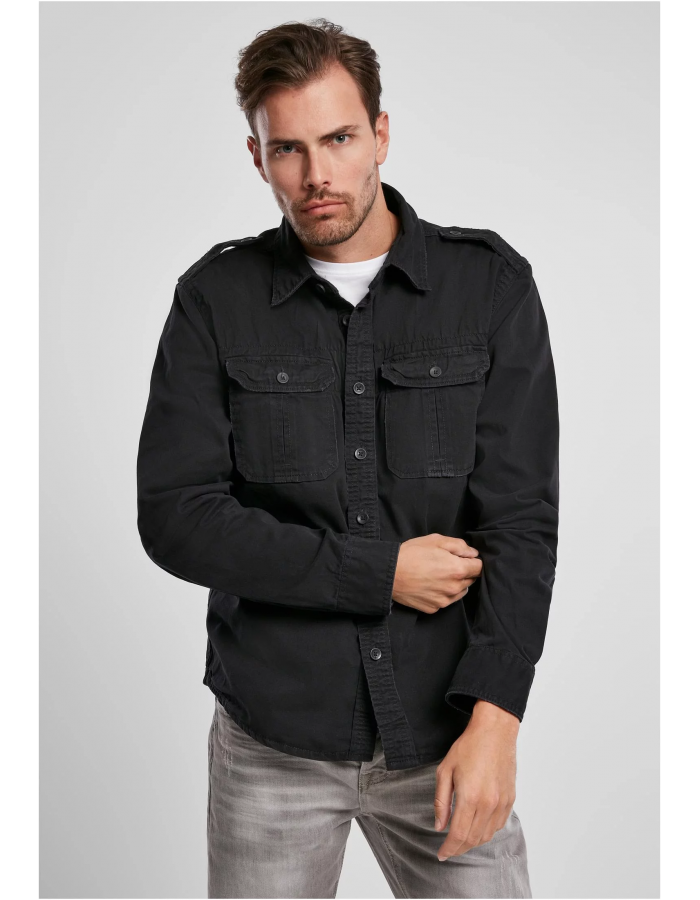 Tento dlouhý rukáv ze 100% bavlny má vintage praný vzhled a neopracované okraje. Užitý vzhled umocnily důmyslně umístěné detaily, jako jsou dvě nárameníky, hrubé manžety a velké hrubé kapsy na hrudi. Klasický límeček a knoflíky zakulacený styl dlouhého rukávu.