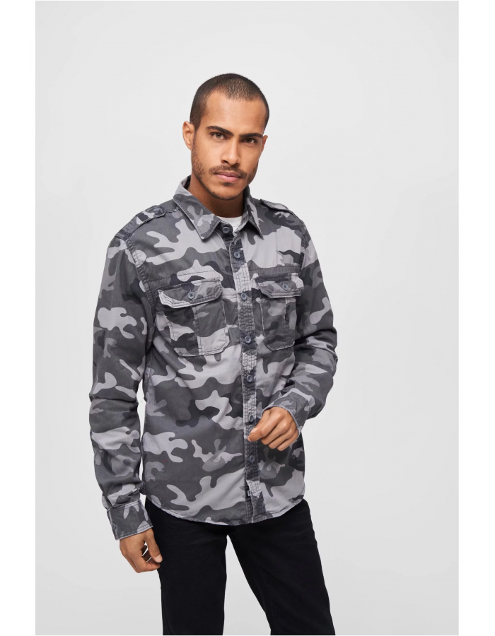 Tento dlouhý rukáv ze 100% bavlny má vintage praný vzhled a neopracované okraje. Užitý vzhled umocnily důmyslně umístěné detaily, jako jsou dvě nárameníky, hrubé manžety a velké hrubé kapsy na hrudi. Klasický límeček a knoflíky zakulacený styl dlouhého rukávu.