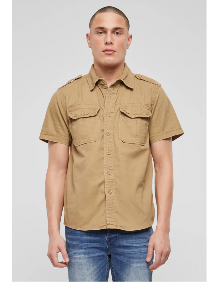 Vintage košile s krátkým rukávem je vyrobena z robustní vintage prané bavlny. Neopracované okraje dodávají vzhled. Klasický rovný střih umožňuje různé styly. Má nárameníky a našité náprsní kapsy na knoflíky.