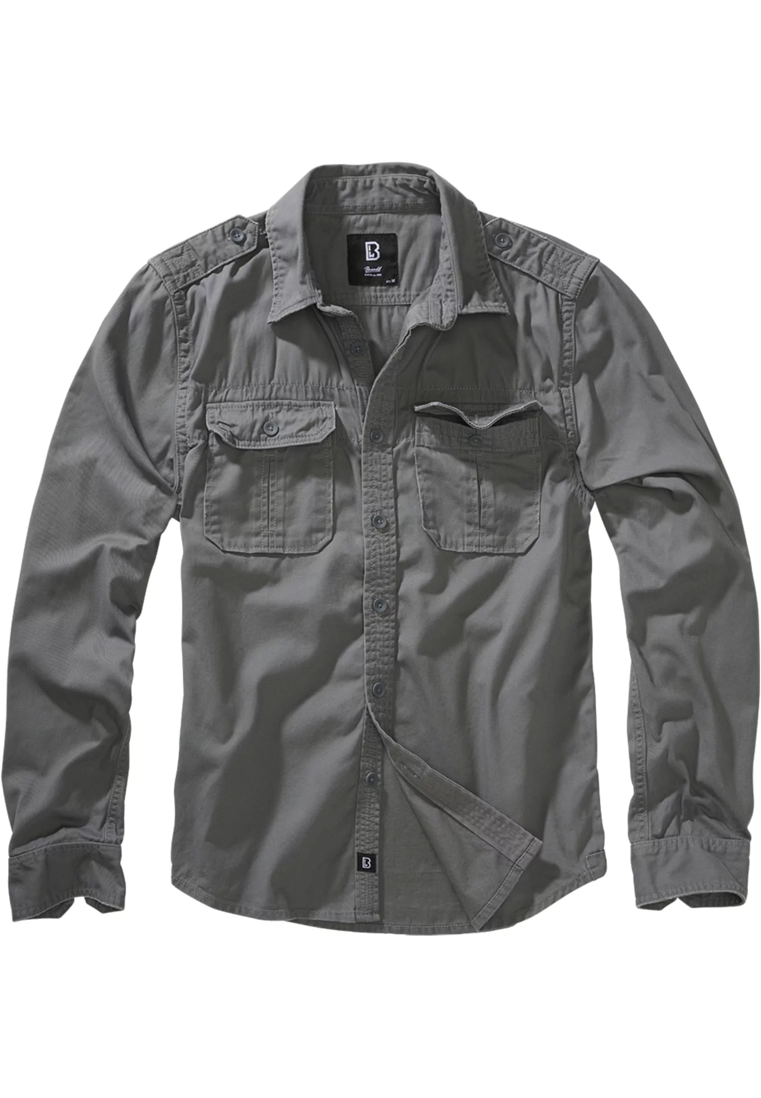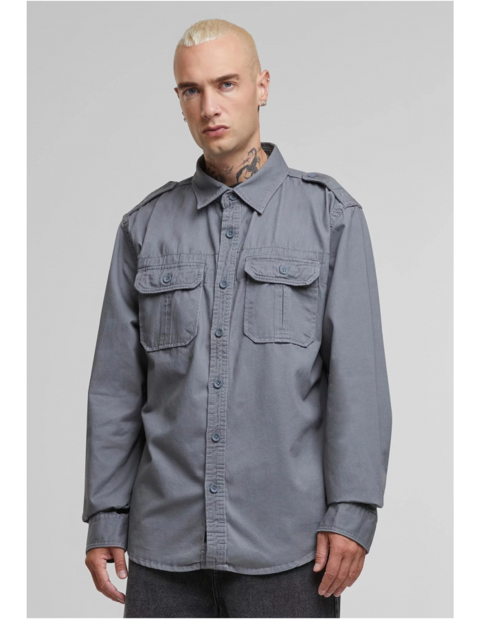 Tento dlouhý rukáv ze 100% bavlny má vintage praný vzhled a neopracované okraje. Užitý vzhled umocnily důmyslně umístěné detaily, jako jsou dvě nárameníky, hrubé manžety a velké hrubé kapsy na hrudi. Klasický límeček a knoflíky zakulacený styl dlouhého rukávu.