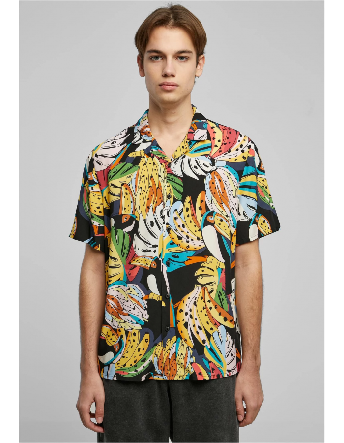 Tato pánská košile se svým ležérně nekomplikovaným tvarem a květinovým potiskem přináší autentický letní pocit. Má krátké rukávy, klopový límec a zapíná se na jednoduchou knoflíkovou légu. Pánská košile je vyrobena z viskózy a má regular fit.