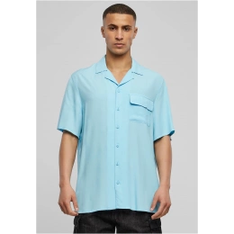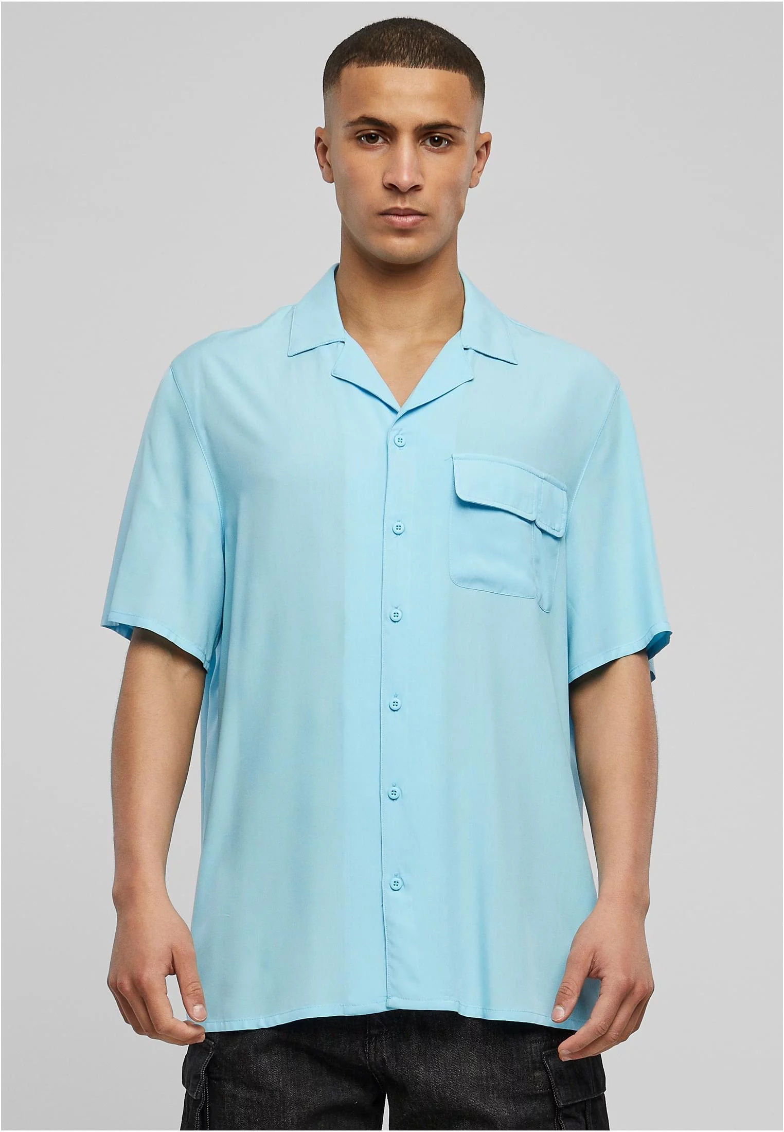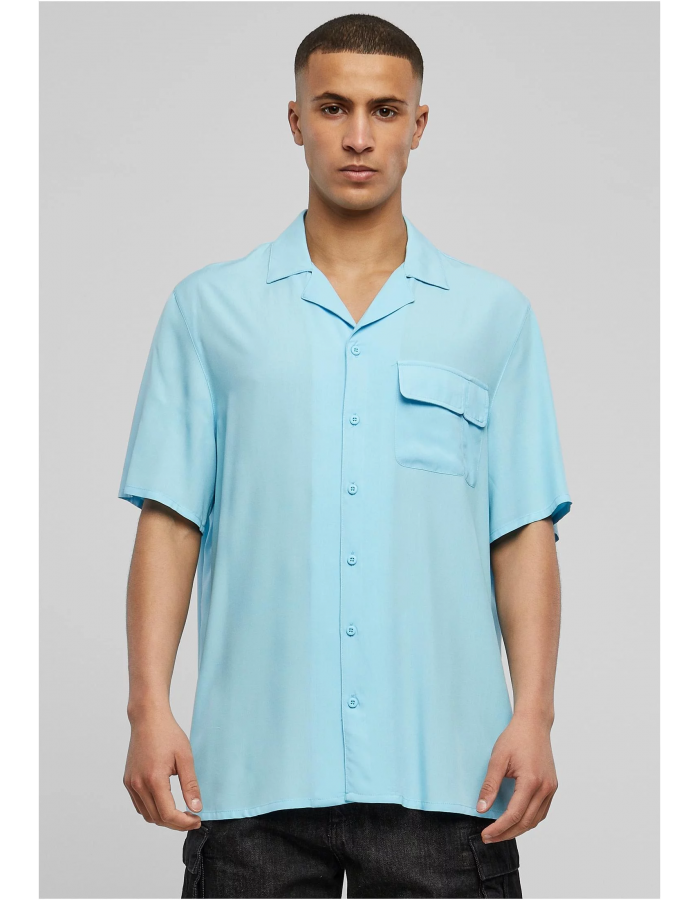 Pánská košile je vybavena klopovým límcem a dvěma různě velkými náprsními kapsami s klopami, které sedí vedle sebe. Styl dotváří knoflíková léga, ramenní sedlo a krátké rukávy. Pánská košile je ušita z lehké tkaniny z viskózy a má regular fit.