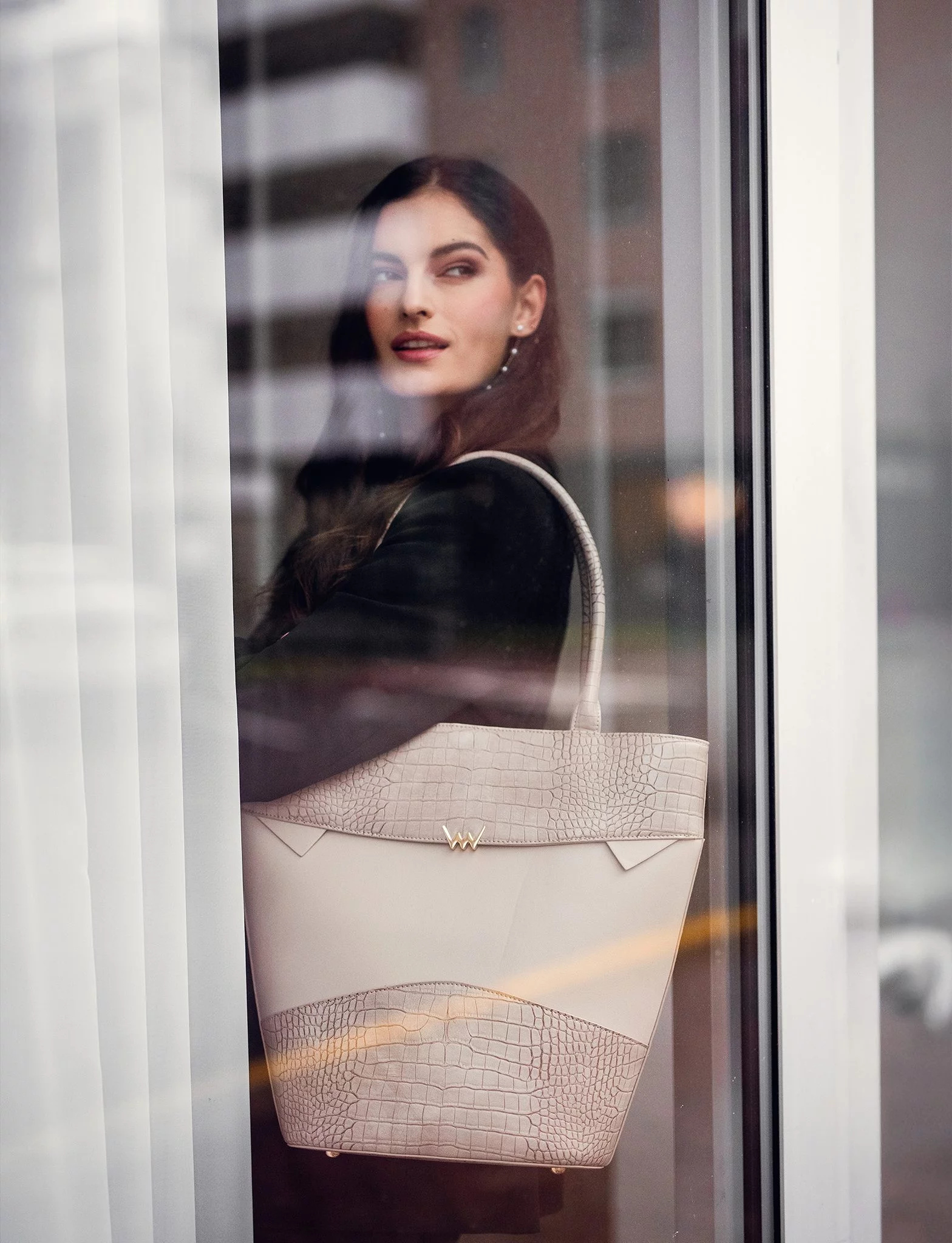 Kabelka, která si na eleganci opravdu potrpí, ale umí být i neformálně stylová. Tvar kabelky inspirovaný korzetem a klopou saka jí dodává jedinečný charakter. Jemné prošívání je nenápadným odkazem na krejčovské detaily návrháře Dominika Navrátila. Je to ideální parťačka, která zvládne všechno od ranní porady až po večerní schůzky.