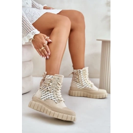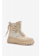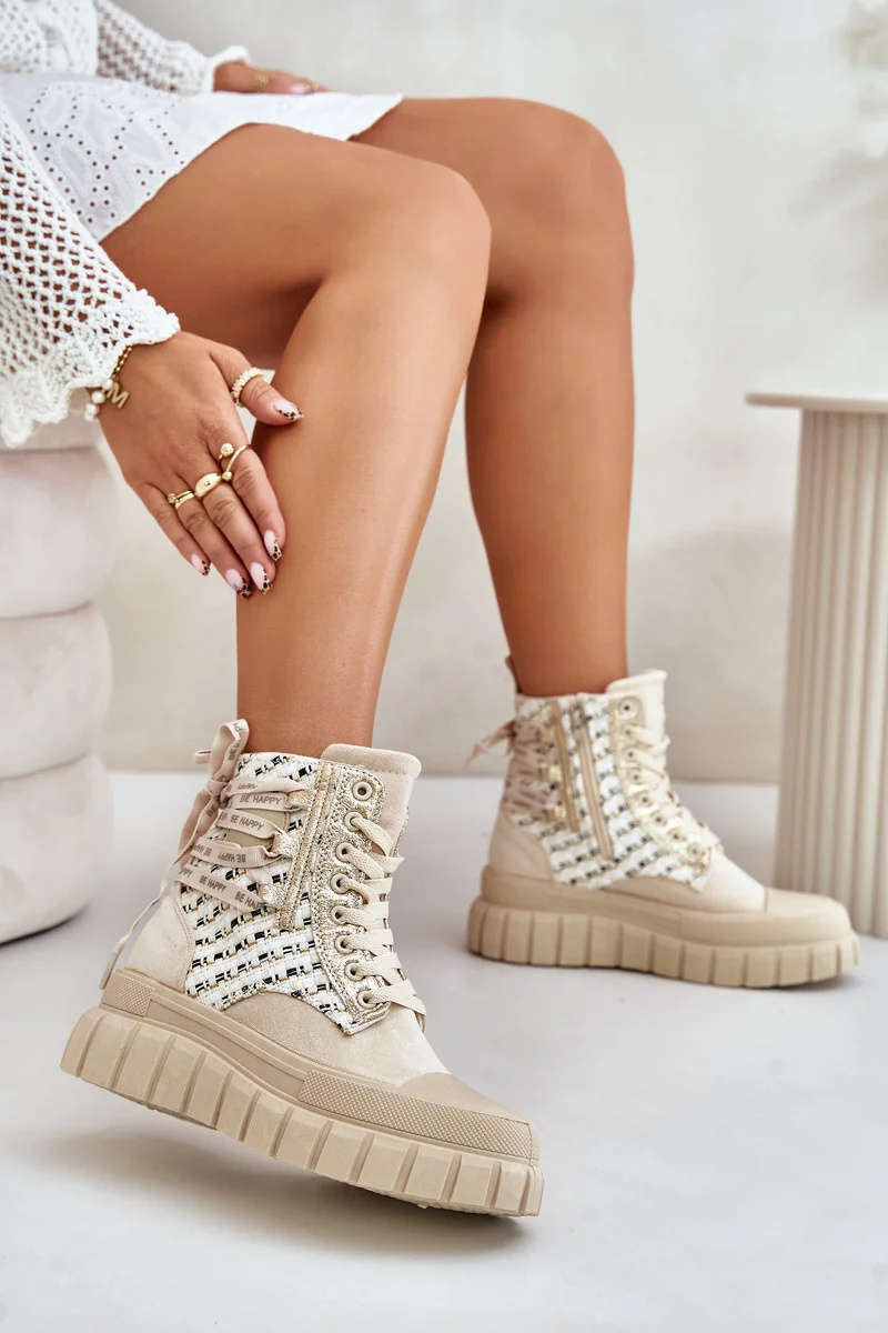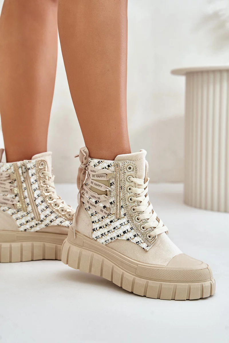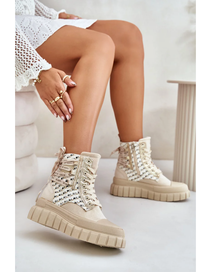 Vysoké dámské tenisky vyrobené z kombinace eko semiše a textilního materiálu. Jejich masivní platforma a dvojité šněrování jim dodávají moderní vzhled, který se skvěle hodí k různým stylizacím. Další zapínání na zip usnadní obouvání obuvi. To je absolutní must-have ve tvém šatníku! Při výběru velikosti se prosím řiďte tabulkou velikostí.