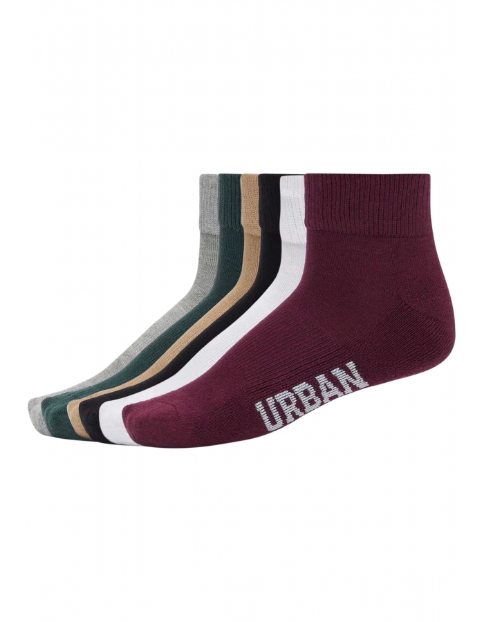 Tlumené barvy, přiléhavý střih i praktických šest párů v jednom balení – tyto krátké punčochy fungují vždy, při sportu i ve volném čase, díky čemuž jsou ideálními společníky na každý den. Elastické manžety a hladký bavlněný materiál použitý s přesně vyladěným obsahem spandexu zaručují optimální podporu a pohodlí. Vrcholem stylu je boční nápis loga Urban Classics.
