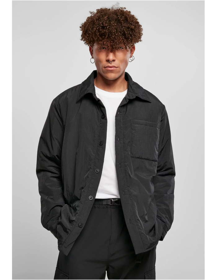 Tato lehce vycpaná pánská bunda zaujme svým mužným stylem, který je založen na designu košile. Má stahovací límec, knoflíkovou légu a jednu náprsní kapsu. Vzhled harmonicky doplňují manžety rukávů a zaoblený lem vpředu i vzadu. Odolná pánská bunda je vyrobena z nylonu odolného proti roztržení a je vybavena prošívanou podšívkou. Je to regular fit.