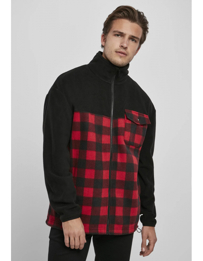 Vzorovaná bunda Polar Fleece Track černá/červený kostkovaný