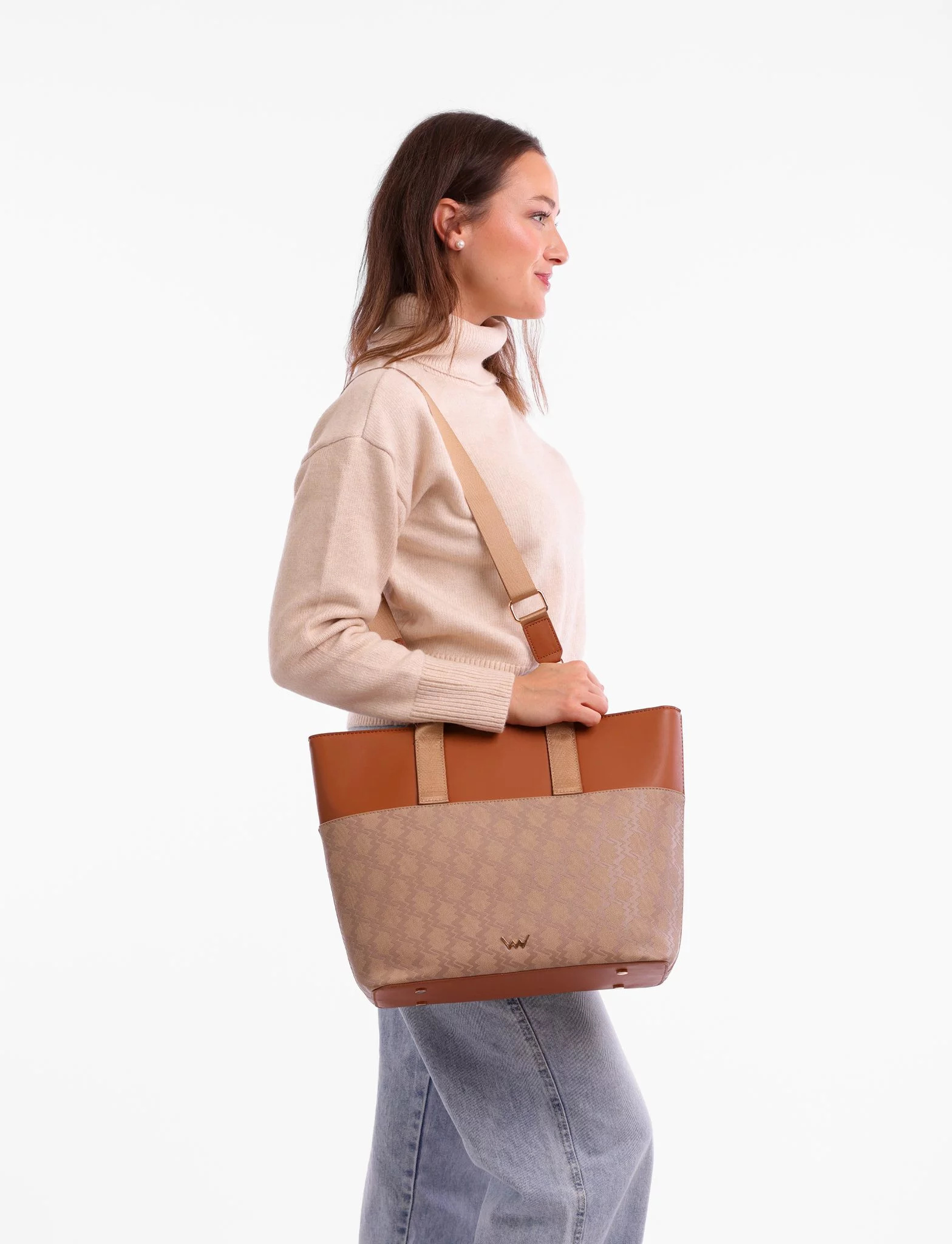 Kabelka z kolekce Monogram, co si říká o obdiv na první pohled! Kombinace dvou materiálů a spousta místa na Tvoje poklady - to je prostě elegance v každém detailu. Hodí se na každou příležitost, ať už míříš do práce nebo na sklenku s kámoškou. Rozšiř svou sbírku stylu o kousek, který má grády!