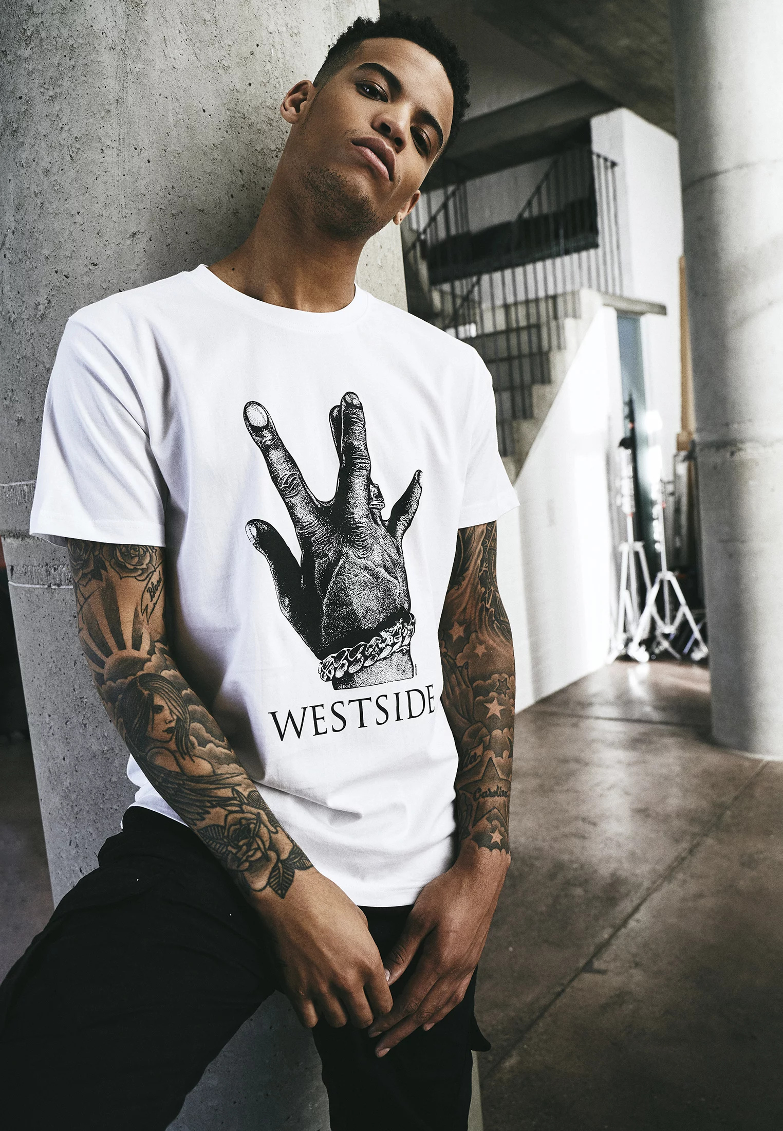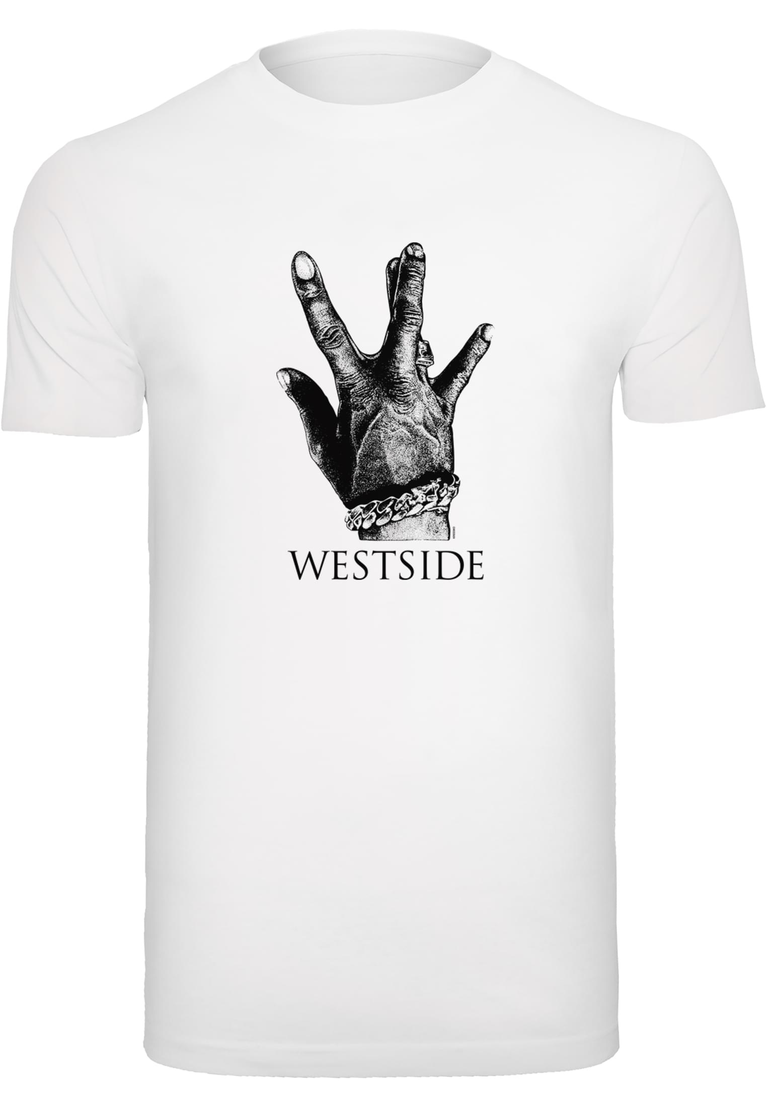 Ukaž, na které straně jsi! S tímto cool tričkem dáte jasně najevo, že v žádném případě nejste součástí Eastside. Potisk na přední straně zobrazuje kresbu legendárního nápisu gangu Westside.