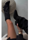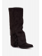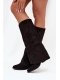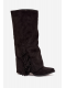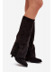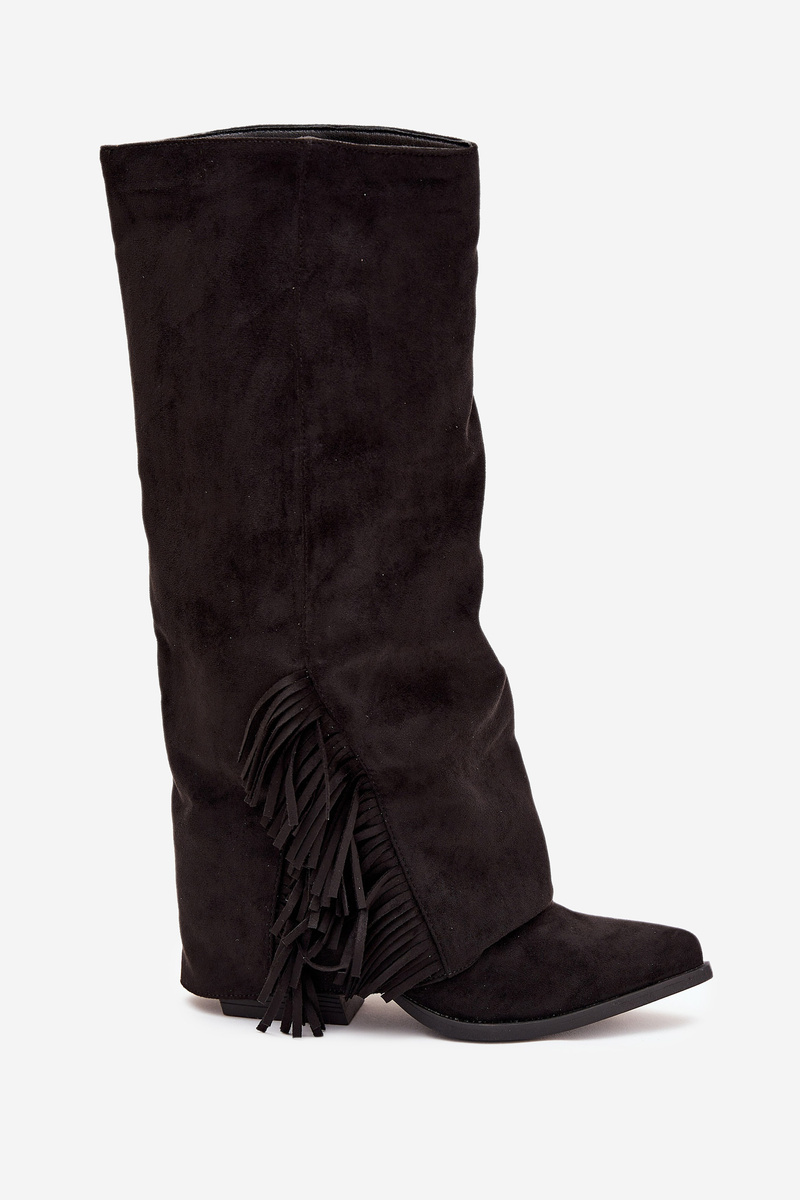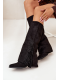 Wsuwane kovbojky z eko semiše na sloupkovém podpatku kombinují pohodlí se stylem. Špičaté špičky dodávají eleganci, zatímco cholewka zdobená třásněmi vnáší jemný boho akcent. Ideální pro casual outfity, skvěle se hodí k šatům, sukním i kalhotám, přidávají každé kreaci nádech kovbojského šarmu.