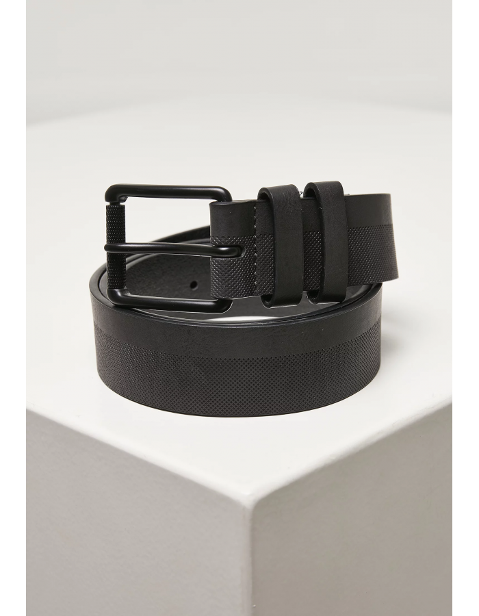 Pásek přesvědčí jemným vzhledem umělé kůže a strukturujícím bodovým vyražením po celé délce a dvou třetinách šířky. Pás Urban Classics nabízí dvě různé délky a je vyroben z robustního polyesteru. Zapíná se na nekomplikované zapínání na špendlíkovou přezku.