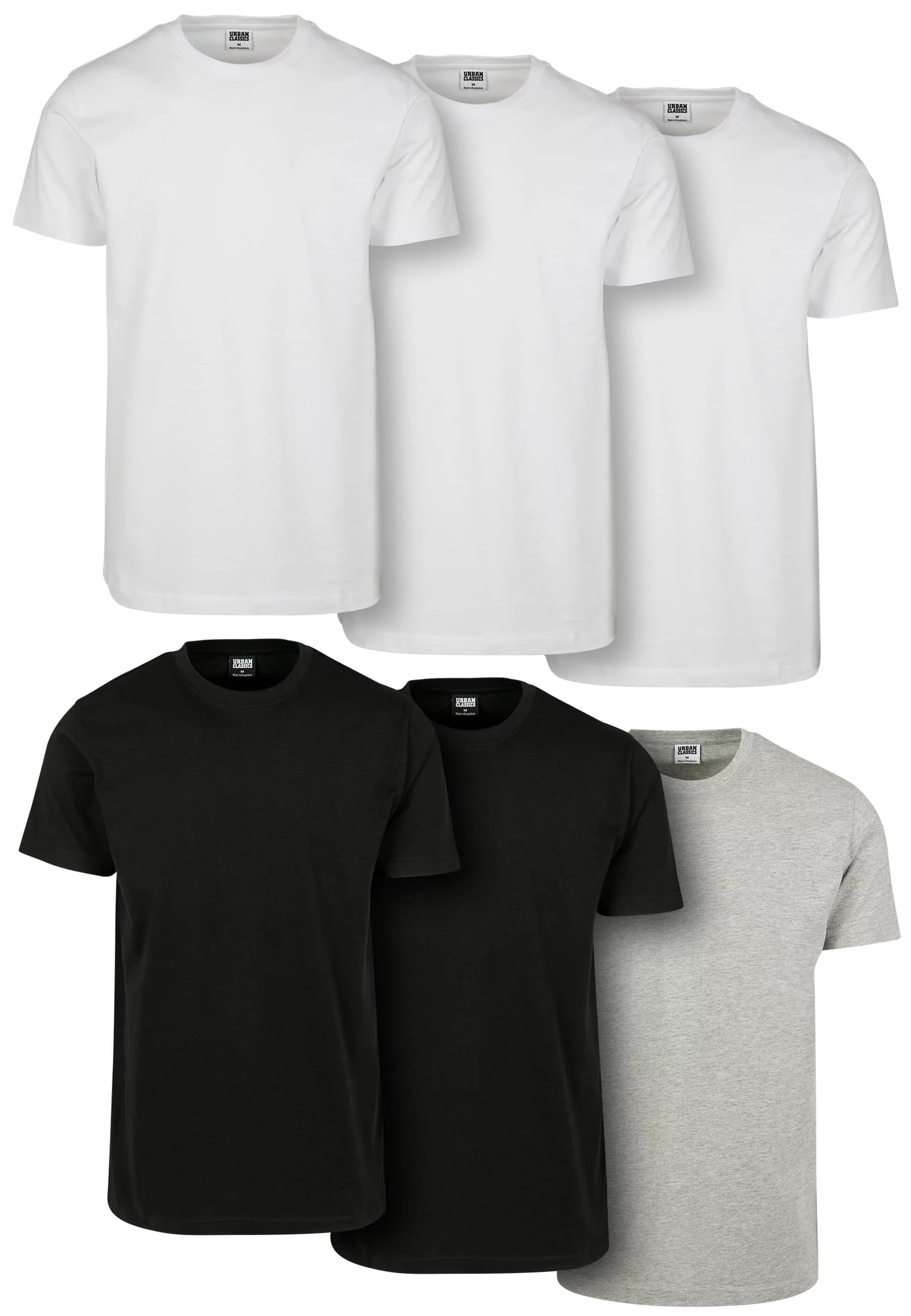 Základní tričko 6-balení wht/wht/wht/blk/blk/gry M