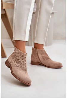 Stylowe i eleganckie botki damskie wykonane z naturalnego zamszu, które doskonale łączą modny wygląd z wygodą użytkowania. Model osadzony na niskim obcasie, idealny na co dzień i do bardziej formalnych stylizacji. Ażurowa cholewka ozdobiona delikatnym akcentem nadaje im wyjątkowego charakteru. Szpiczaste noski optycznie wysmuklają stopę, dodając szyku każdemu zestawowi. To doskonały wybór dla kobiet ceniących jakość, styl i komfort. Przy wyborze rozmiaru prosimy sugerować się tabelą rozmiarów.