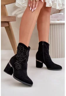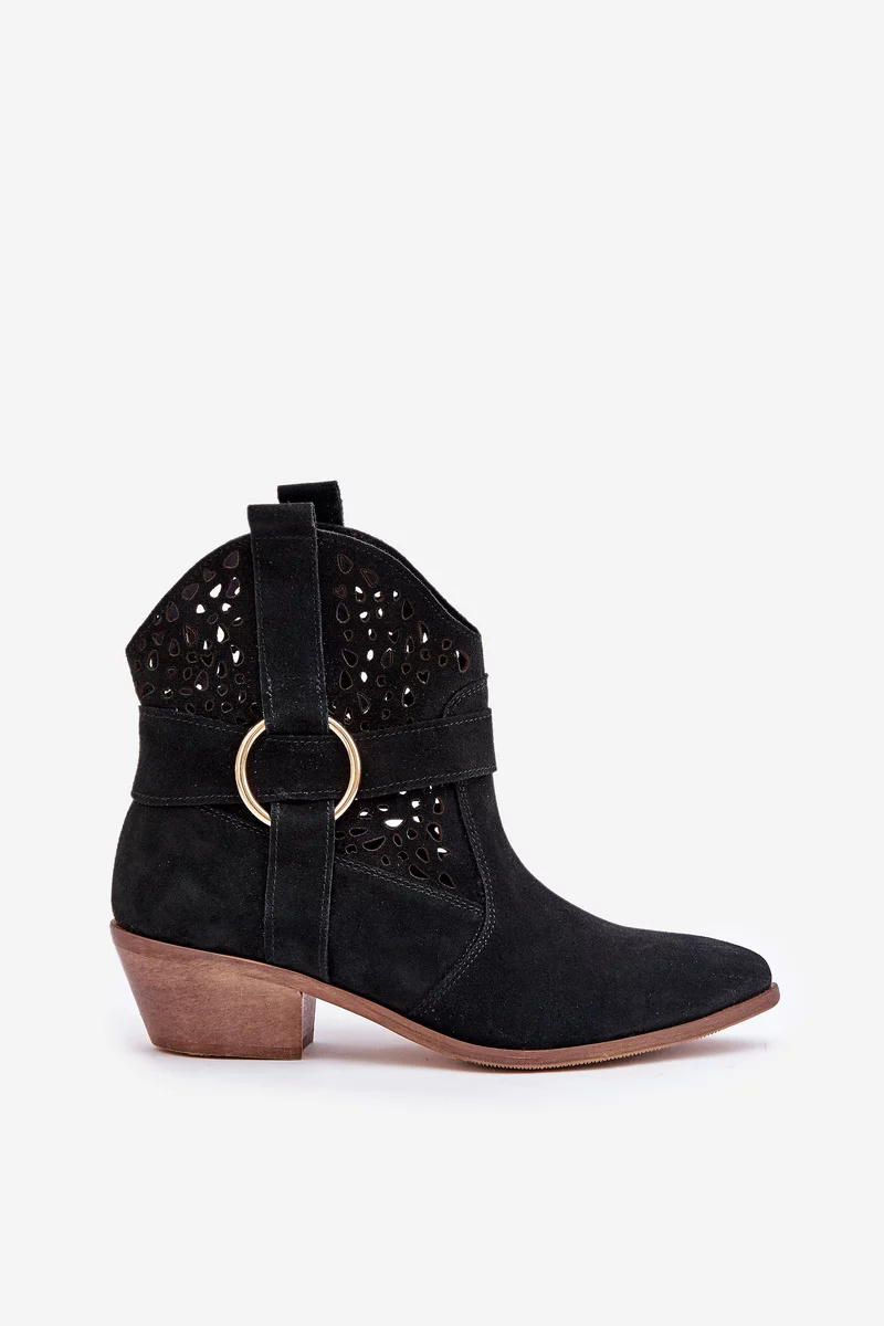 Stylowe i eleganckie botki damskie wykonane z naturalnego zamszu, które doskonale łączą modny wygląd z wygodą użytkowania. Model osadzony na niskim obcasie, idealny na co dzień i do bardziej formalnych stylizacji. Ażurowa cholewka ozdobiona delikatnym akcentem nadaje im wyjątkowego charakteru. Szpiczaste noski optycznie wysmuklają stopę, dodając szyku każdemu zestawowi. To doskonały wybór dla kobiet ceniących jakość, styl i komfort. Przy wyborze rozmiaru prosimy sugerować się tabelą rozmiarów.