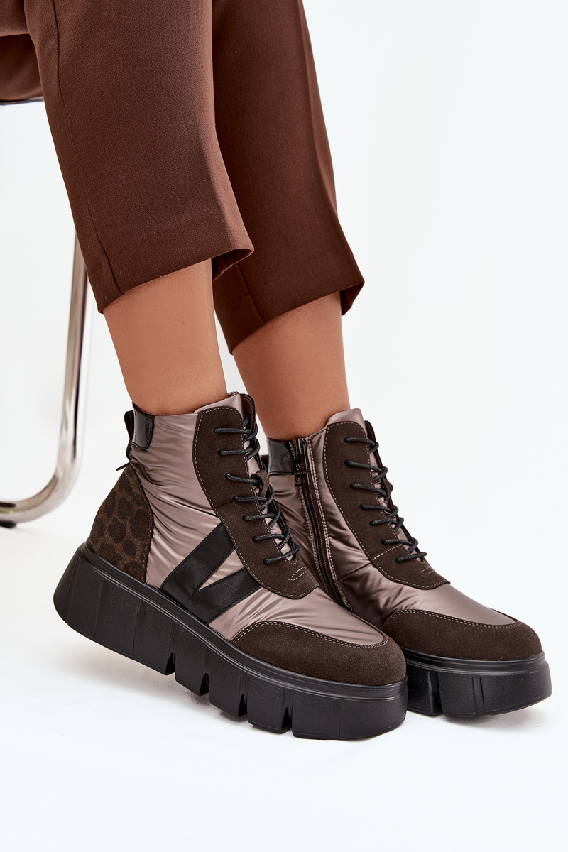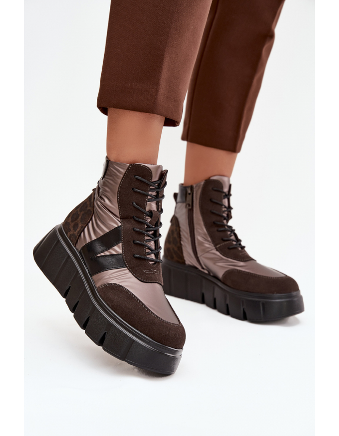 Dámské boty Vinceza jsou módní volbou pro chladnější období. Vyrobené z kombinace eko semiše a hladkého materiálu, prezentují moderní vzhled, který přitahuje pozornost. Boty jsou osazeny na pevné platformě, která zajišťuje komfort a stabilitu při nošení. Model kombinuje šněrování se zapínáním na zip, což usnadňuje obouvání a dokonalé přizpůsobení boty noze. Zateplený vnitřek měkkou podšívkou poskytuje teplo a pohodlí, díky čemuž jsou boty ideální pro podzimní a zimní sezónu. Délka stélky: 36 – 23,5 cm / 37 – 24 cm / 38 – 24,5 cm / 39 – 25 cm / 40 – 26 cm Při výběru velikosti doporučujeme řídit se tabulkou velikostí.