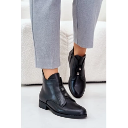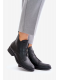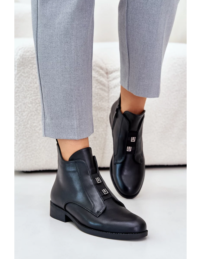 Dámské kotníkové boty vyrobené z eko kůže jsou kombinací stylu a pohodlí, ideální na chladnější dny. Zabudované na plochém podpatku, zaručují pohodlí při nošení. Model má zaoblené špičky a dvě jemné ozdoby vpředu, které dodávají elegantní charakter. Zapínání na zip usnadňuje obouvání a vnitřek zateplený obuvnickou dekou zajišťuje teplo a pohodlí. Ideální pro každodenní stylizace. Při výběru velikosti se prosím řiďte tabulkou velikostí.