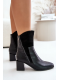 Dámské kotníkové boty vyrobené z eko kůže, osazené na stabilním podpatku typu sloupek.