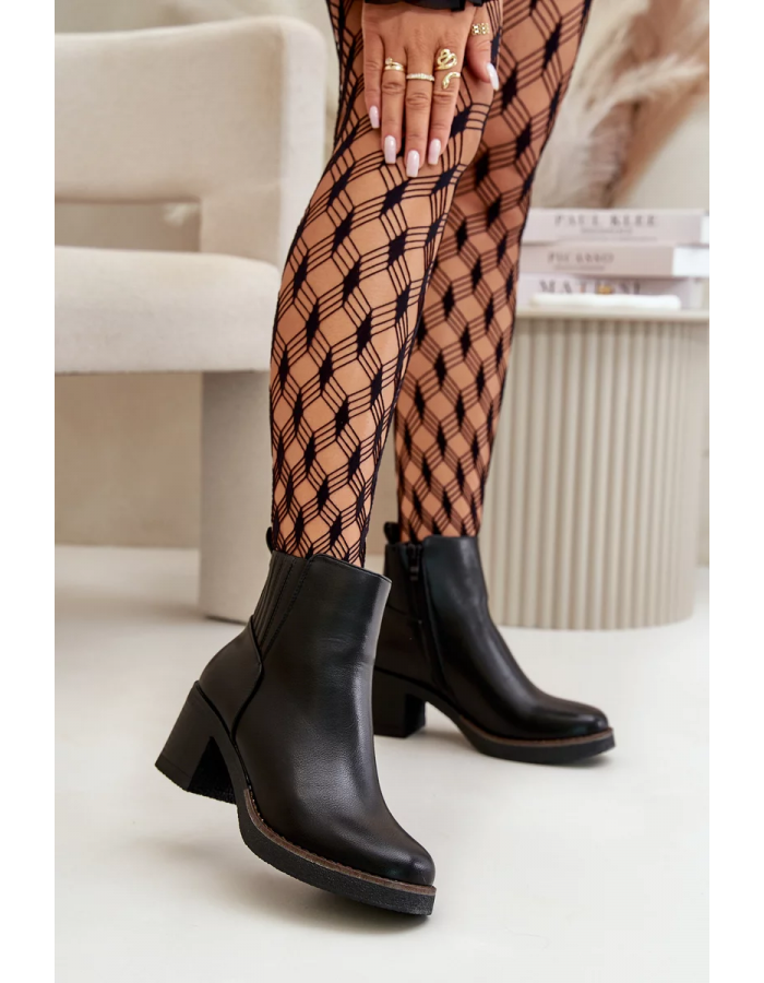 Uvnitř zateplené obuvnickou dekou, poskytují teplo a pohodlí i při nízkých teplotách. Osazené na stabilním sloupkovém podpatku, spojují eleganci s pohodlím nošení. Praktické zapínání na zip usnadňuje rychlé a pohodlné oblékání. Tyto boty jsou ideálním doplněním jak každodenních, tak i formálnějších stylizací.