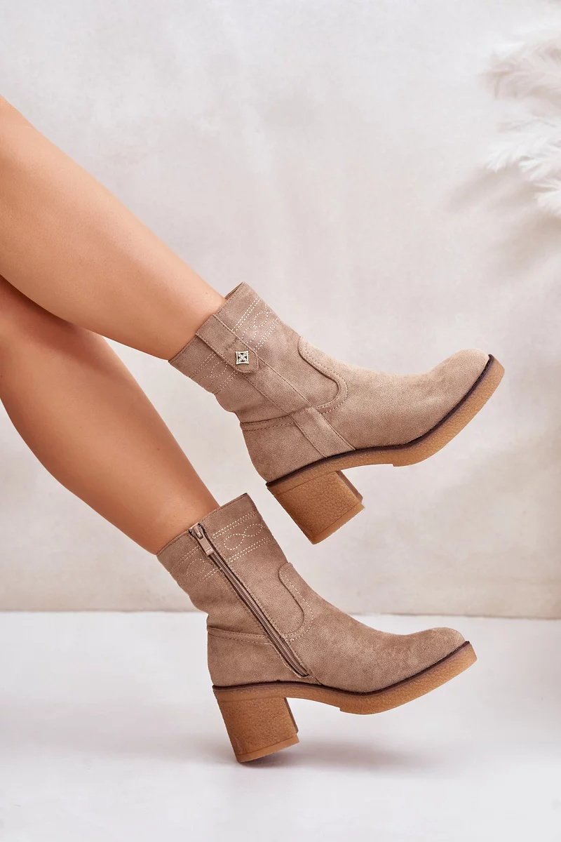 Klasické dámské kotníkové boty vyrobené z eko semiše.