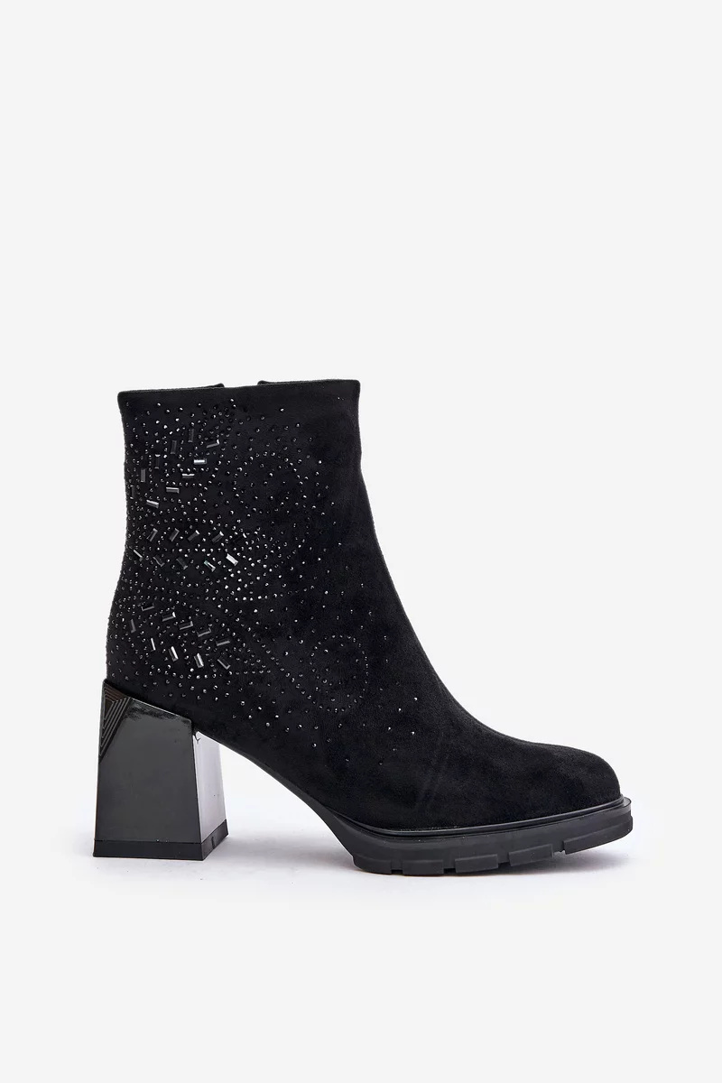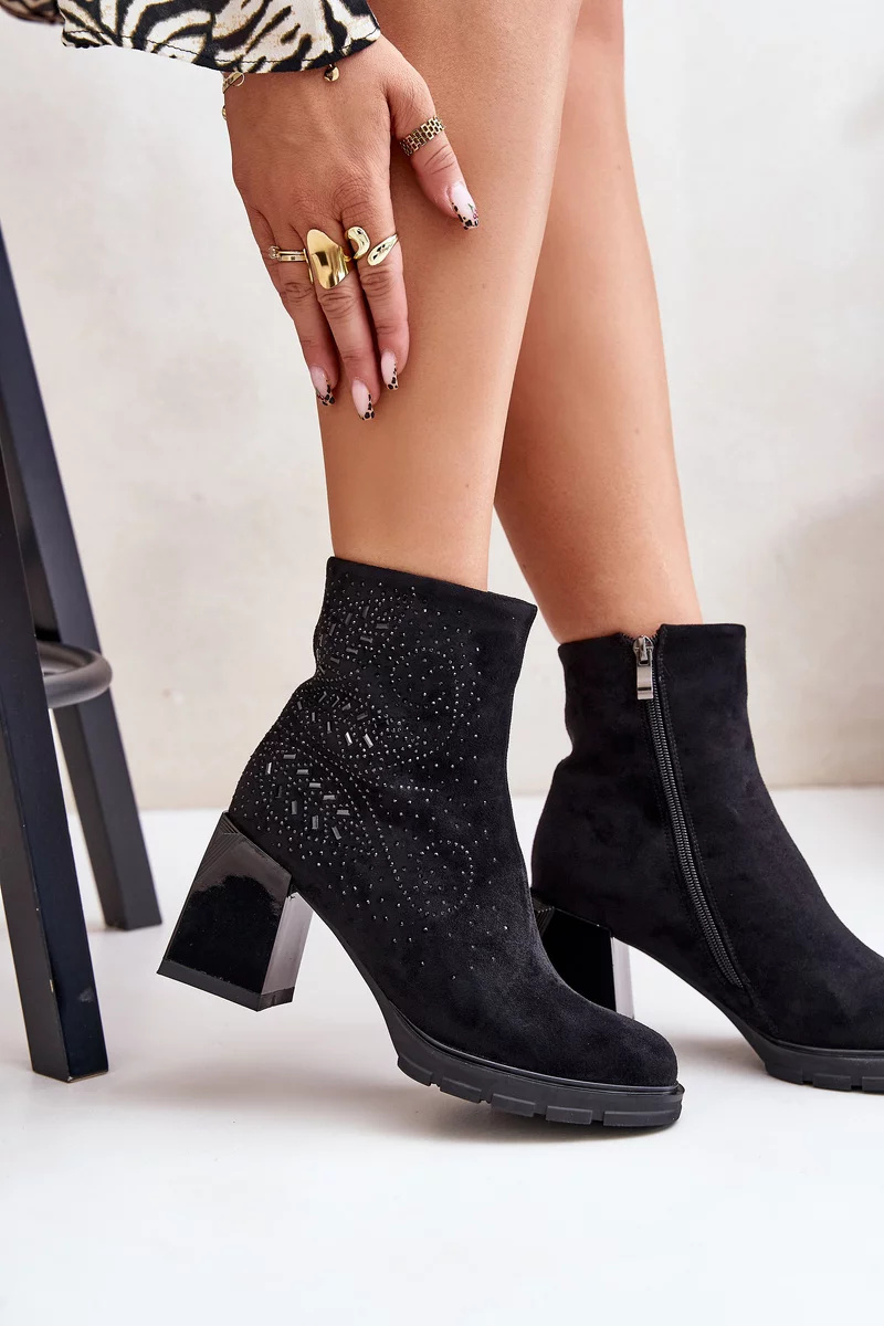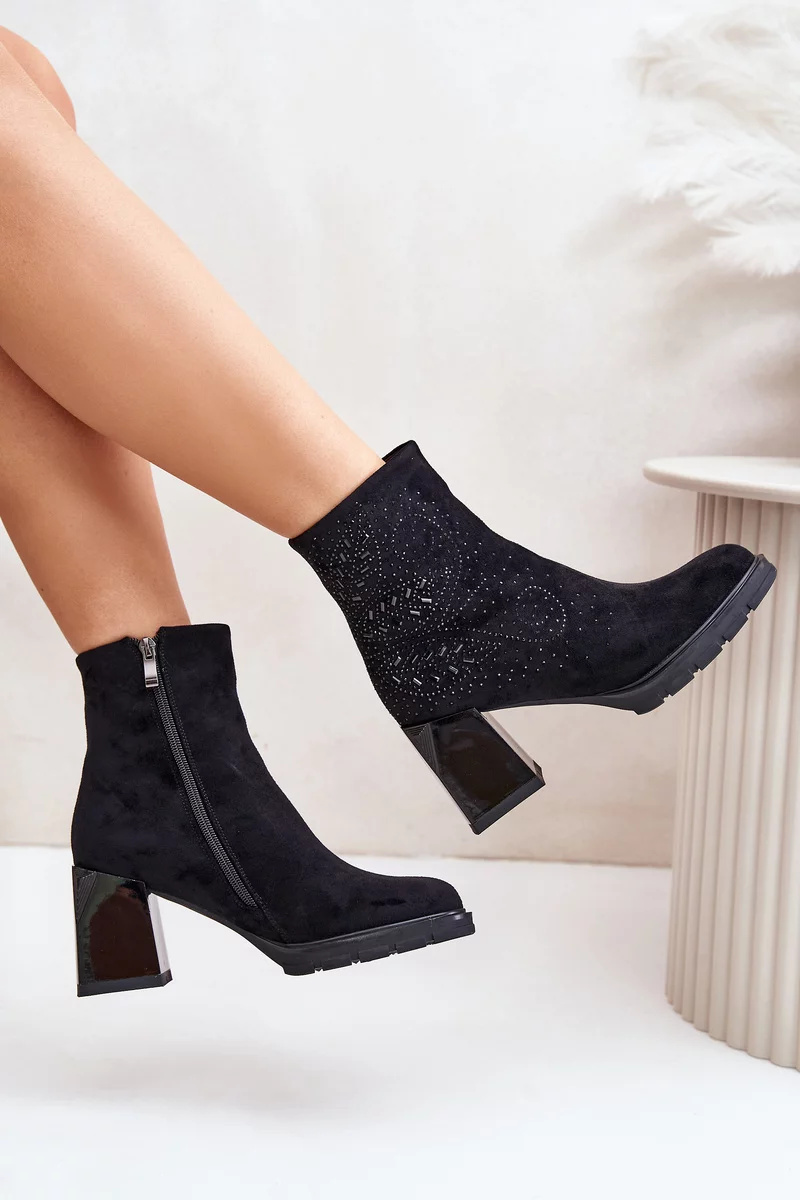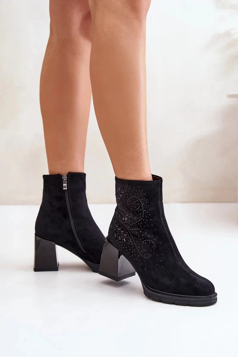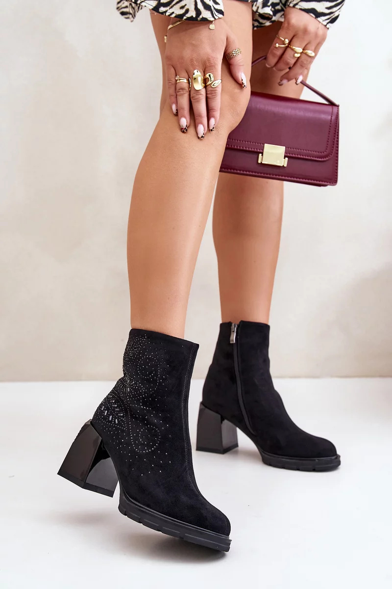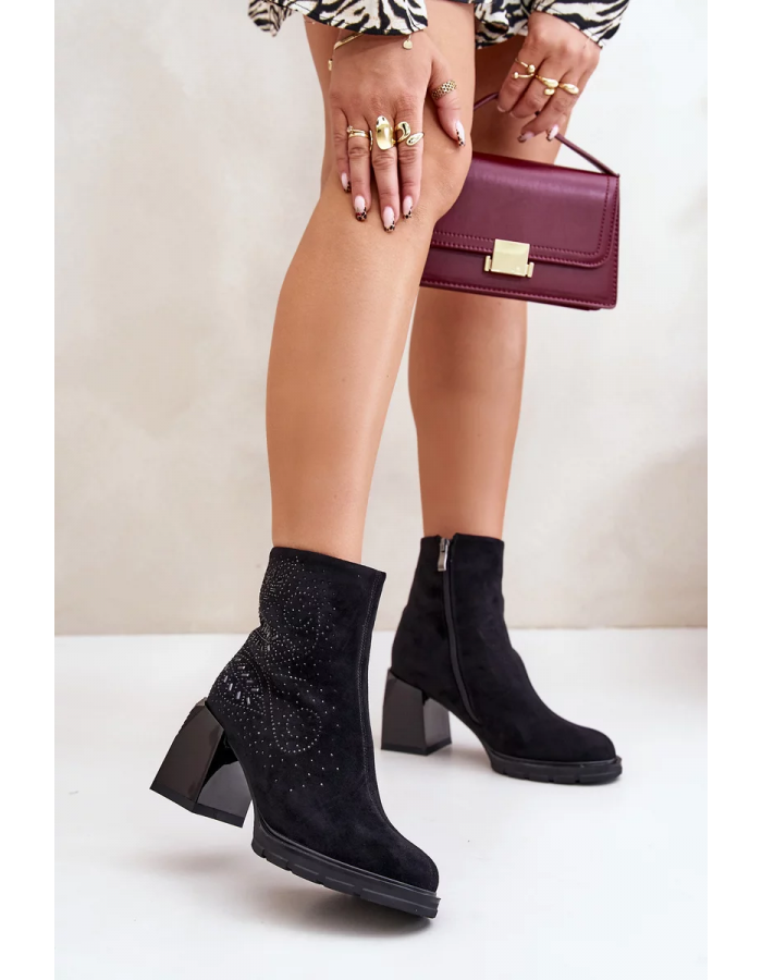 Elegantní kotníkové boty vyrobené z eko semiše, posazené na stabilním podpatku ve formě sloupku. Svršek ozdobený jemnými detaily jim dodává výjimečný charakter. Vnitřek zateplený, což zajišťuje pohodlí při nošení i v chladnějších dnech. Ideální pro podzimní a zimní stylizace! Při výběru velikosti se prosím řiďte tabulkou velikostí.
