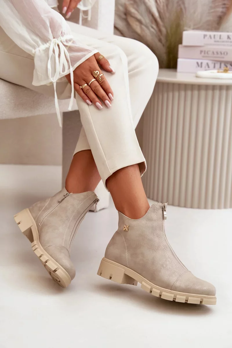 Kotníkové boty značky Jezzi jsou ideální volbou pro ty, kteří si cení jak stylu, tak pohodlí. Vyrobeno z eko kůže. Plochý podpatek zajišťuje stabilitu při každém kroku. Vnitřek zateplený obuvnickou dekou zaručuje teplo v chladnějších dnech. Ideální pro každodenní stylizace, tyto kotníkové boty spojují funkčnost s módním vzhledem. Při výběru velikosti se prosím řiďte tabulkou velikostí.