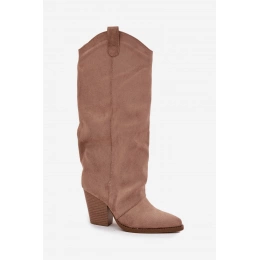 Kozačky Mavine jsou vyrobené z kvalitního eko semiše s jemným povrchem. Sloupkový podpatek poskytuje stabilitu a pohodlí při chůzi, zatímco zateplený vnitřek udržuje nohy v teple. Kovbojský střih s dekorativními detaily dodává botám osobitý charakter. Boční zip umožňuje snadné obouvání a perfektní padnutí na noze. Béžový odstín je univerzální a snadno se kombinuje s různými outfity.