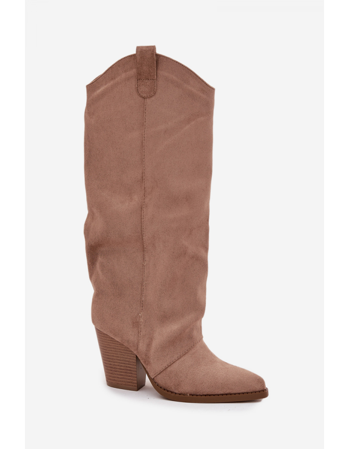 Stylové dámské kovbojské kozačky Mavine v béžovém odstínu kombinují módní design, pohodlí a teplo. Ideální volba pro ženy, které chtějí originální boty do chladnějších měsíců.