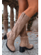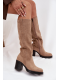 Elegantní dámské kozačky Sanelle v béžovém odstínu kombinují pohodlí, stabilitu a módní vzhled. Masivní sloupkový podpatek zajišťuje komfort a dodává botám výrazný charakter.