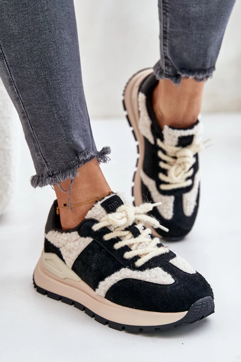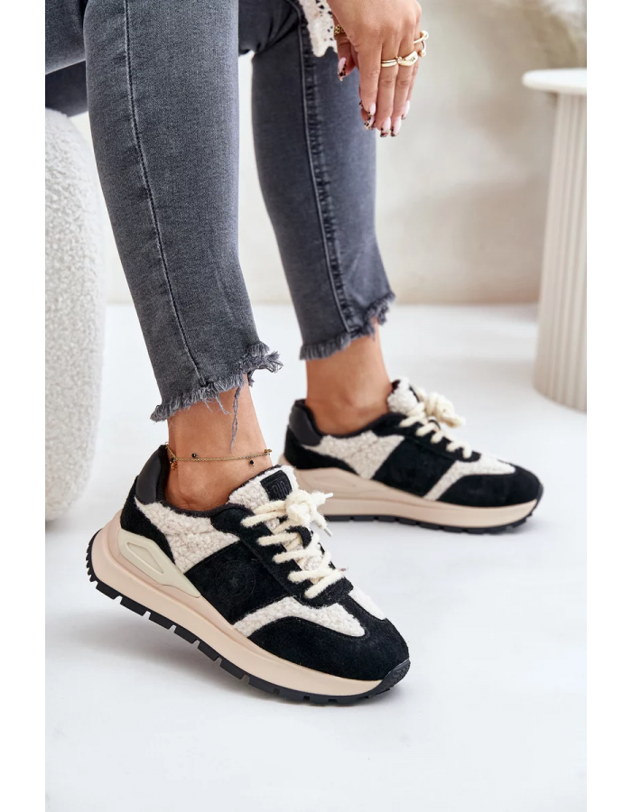 Dámské tenisky od značky Big Star. Vyrobeno z kombinace přírodní semiše a textilního materiálu. Vestavěné na platformě. Střed mírně zateplený obuvnickou plstí. Model ten obsahuje vložku HI POLLY SYSTEM, která pochází z recyklace, je odolná proti oděru a deformacím a absorbuje vlhkost. Módní střih, který ideálně doplní podzimní stylizace! Při výběru velikosti se prosím řiďte tabulkou velikostí.