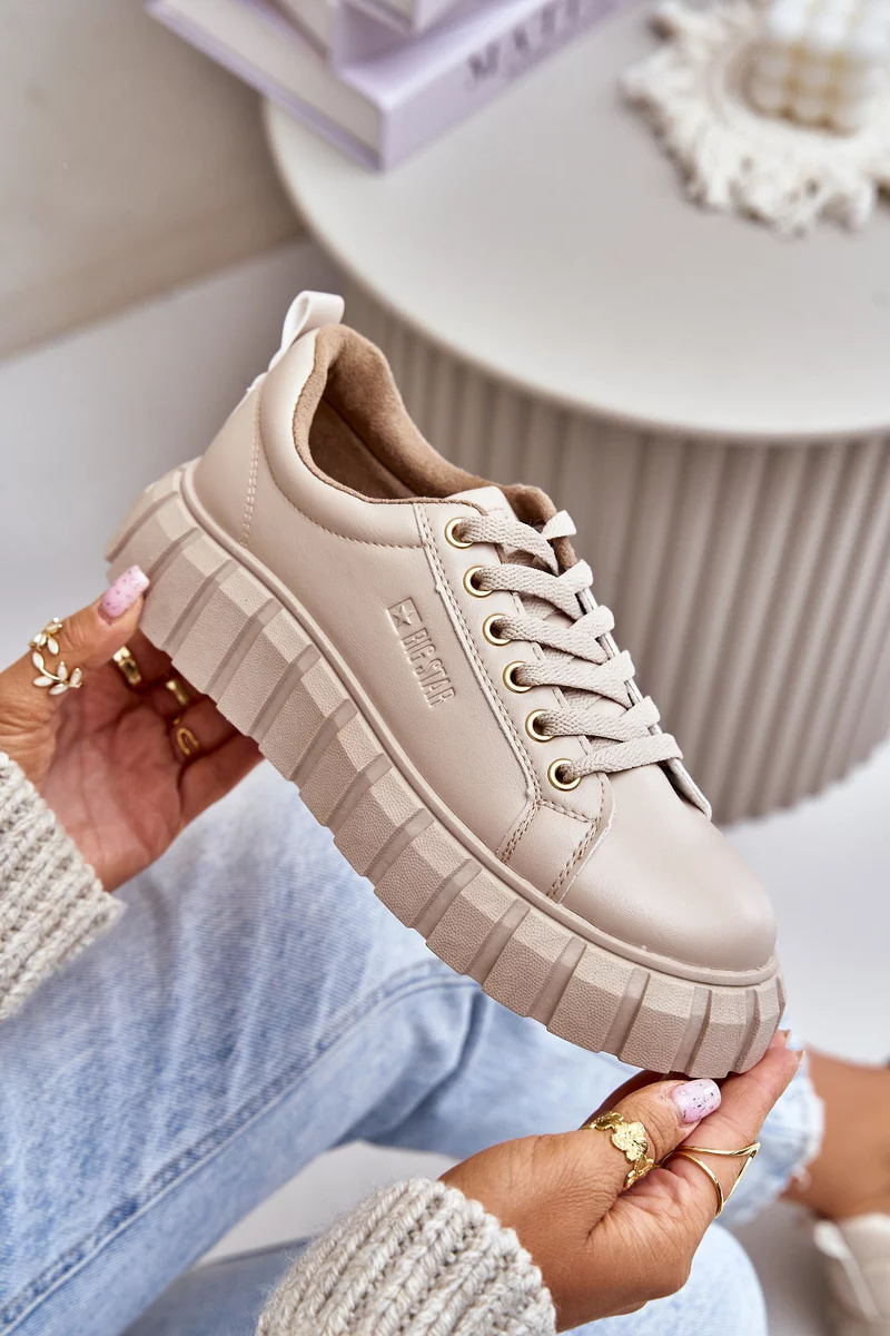 Dámské tenisky značky Big Star jsou módní a pohodlnou volbou pro chladnější dny. Zabudované na platformě, dodávají moderní styl a jemné zvýšení. Model je šněrovací, což zajišťuje ideální přizpůsobení, a zaoblené špičky jim dodávají klasický vzhled. Vnitřek byl lehce zateplen obuvnickou dekou, což zaručuje teplo a pohodlí při nošení. To je skvělá nabídka pro ženy, které si cení módního designu a pohodlí v jednom. Při výběru velikosti se prosím řiďte tabulkou velikostí.
