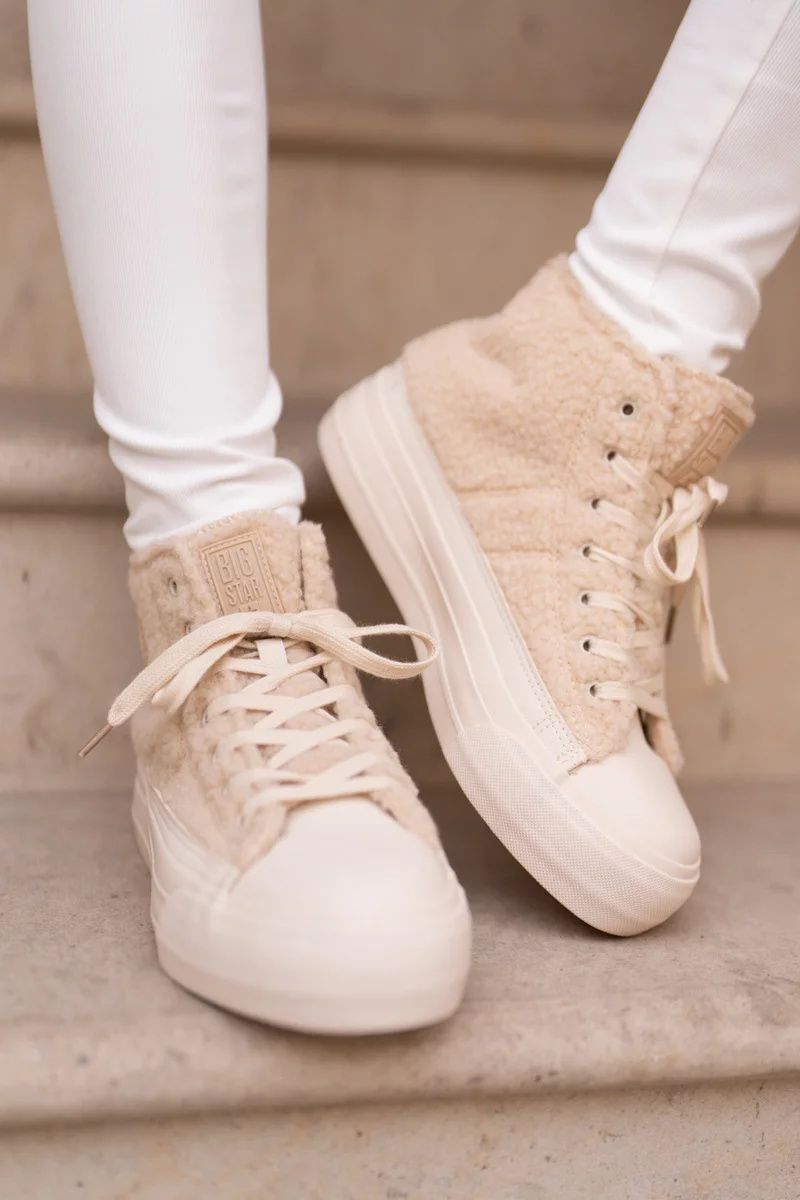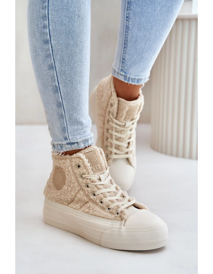 Dámské tenisky značky BIG STAR Vyrobené s módním kožíškem typu beránek. Střed zateplený obuvnickou dekou, což zaručuje teplo v chladnějších dnech. Osazené na platformě, která skvěle izoluje od studeného podkladu. Zaoblené špičky. Ten stylový kousek bys měla mít ve svém podzimně-zimním šatníku. Při výběru velikosti se prosím řiďte tabulkou velikostí.