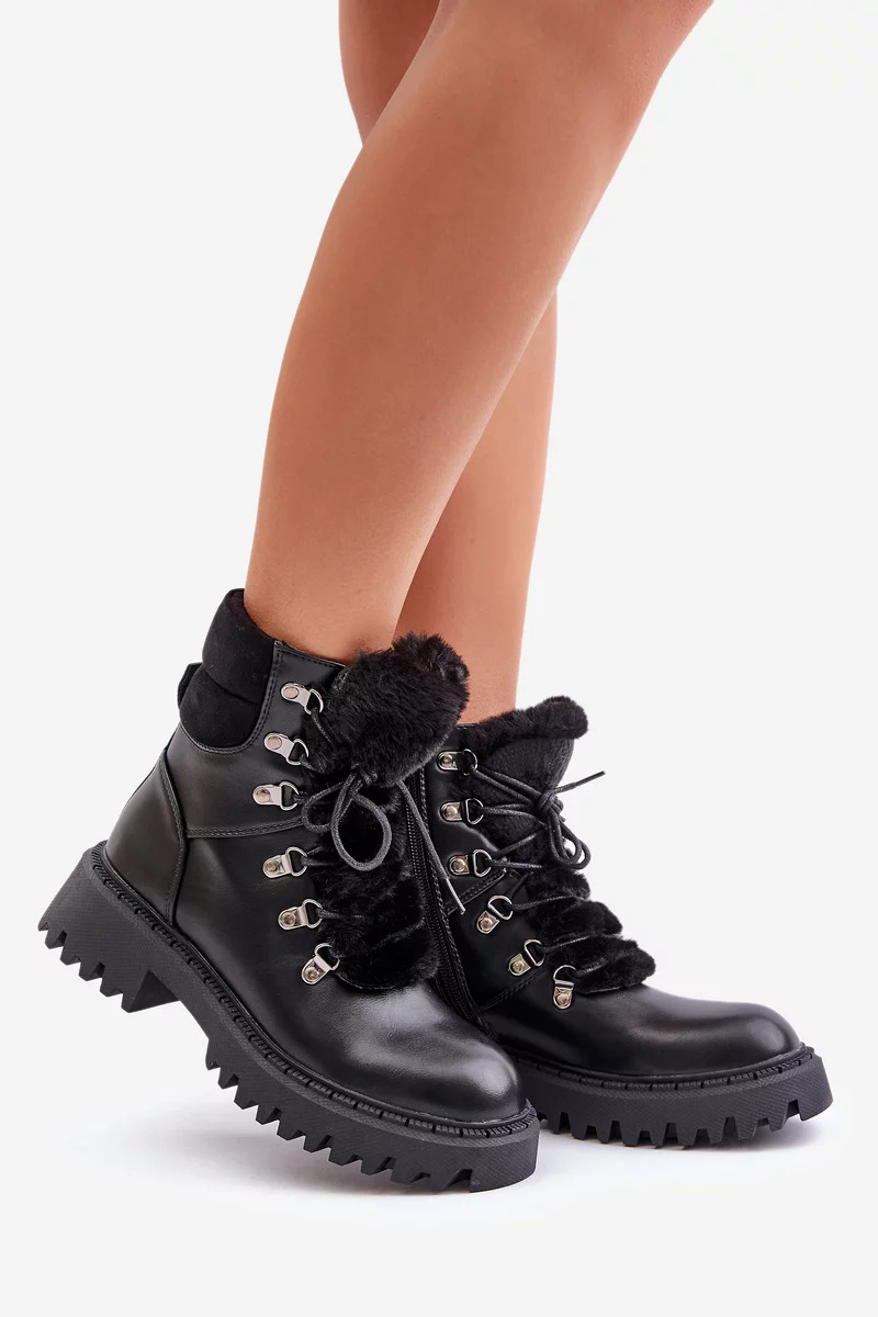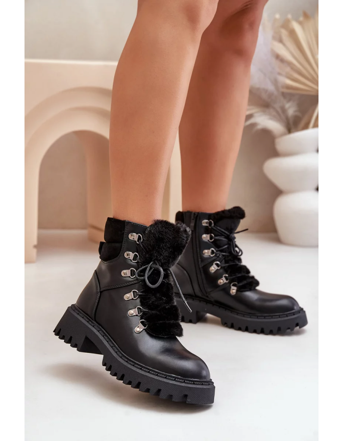 Dámské trapery vyrobené z eko kůže jsou skvělou volbou na chladnější dny. Model se šněrováním a zapínáním na zip, což usnadňuje rychlé obouvání a zajišťuje ideální přizpůsobení. Jazyk boty je ozdoben měkkým kožíškem, který přidává na půvabu a chrání před chladem. Vnitřní zateplení zajišťuje teplo a pohodlí při nošení, díky čemuž se trapery skvěle hodí jak na každodenní nošení, tak i do náročnějších povětrnostních podmínek. Při výběru velikosti se prosím řiďte tabulkou velikostí.