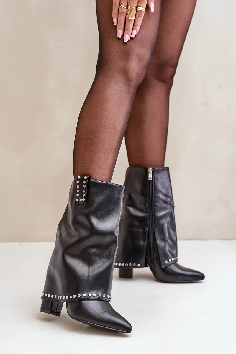 Zabudované na pohodlném podpatku typu sloupek, s špičatými špičkami, dodávají eleganci a opticky prodlužují nohy. Vyrobeno z eko kůže. Zapínané na zámek, spojují komfort nošení s módním designem, ideálně se hodí jak pro každodenní, tak i pro formálnější stylizace.