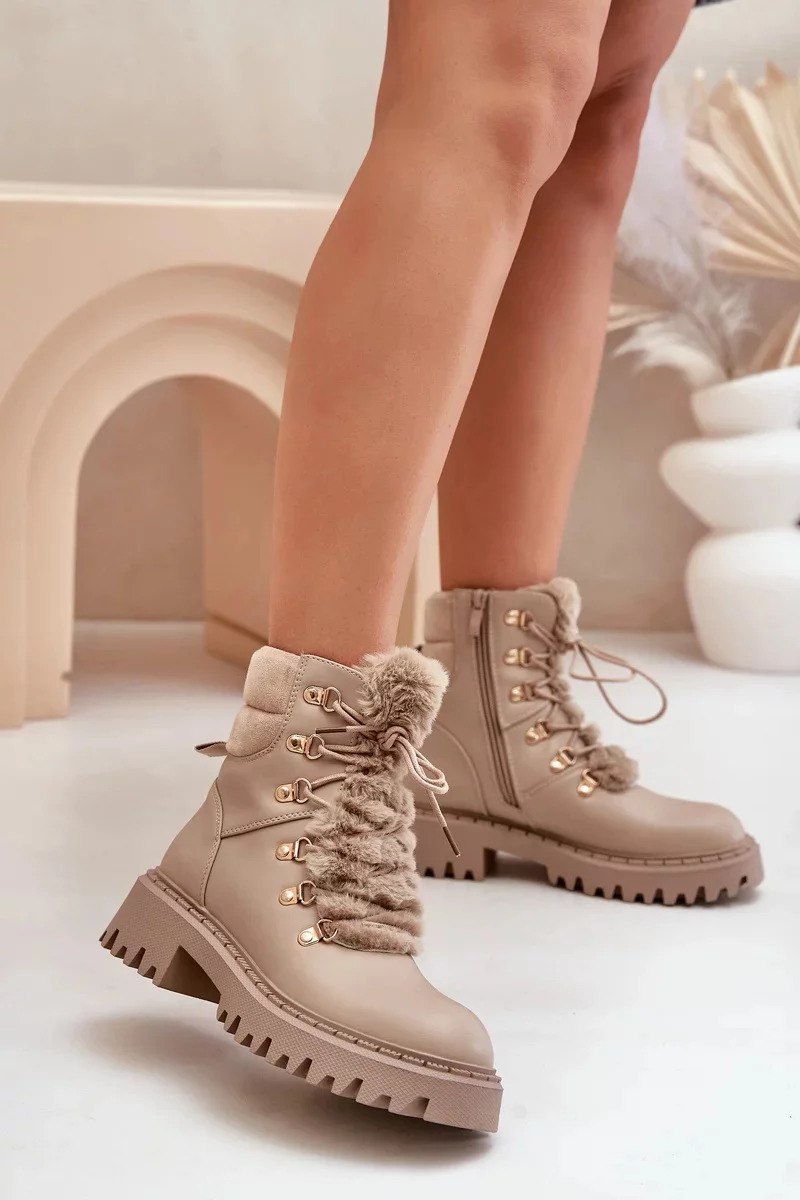Dámské trapery vyrobené z eko kůže jsou skvělou volbou na chladnější dny. Model se šněrováním a zapínáním na zip, což usnadňuje rychlé obouvání a zajišťuje ideální přizpůsobení. Jazyk boty je ozdoben měkkým kožíškem, který přidává na půvabu a chrání před chladem. Vnitřní zateplení zajišťuje teplo a pohodlí při nošení, díky čemuž se trapery skvěle hodí jak na každodenní nošení, tak i do náročnějších povětrnostních podmínek. Při výběru velikosti se prosím řiďte tabulkou velikostí.